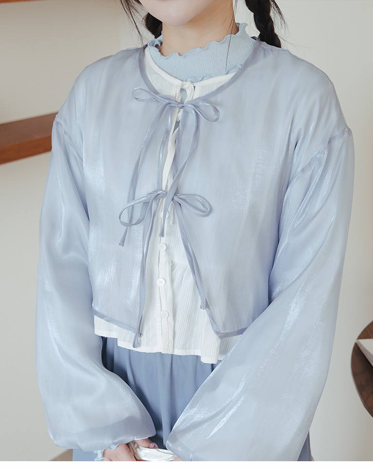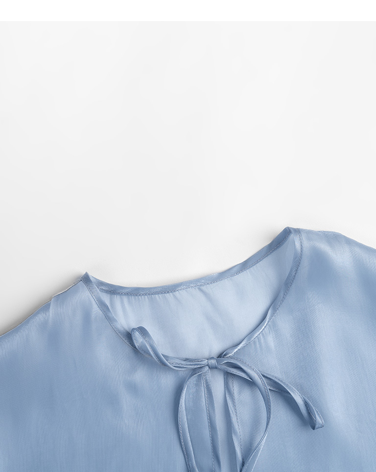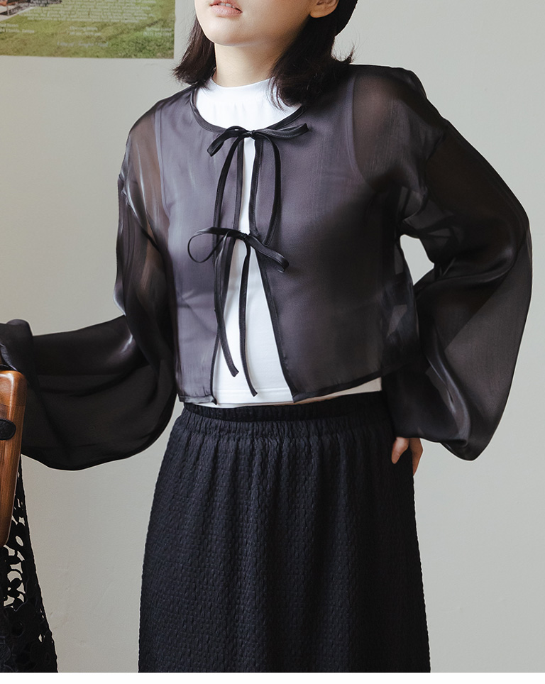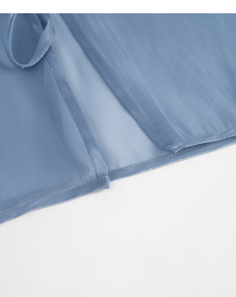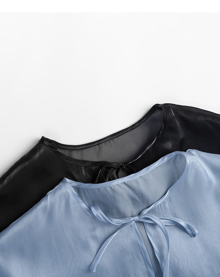 光澤透膚網紗雙綁帶罩衫 兩色售