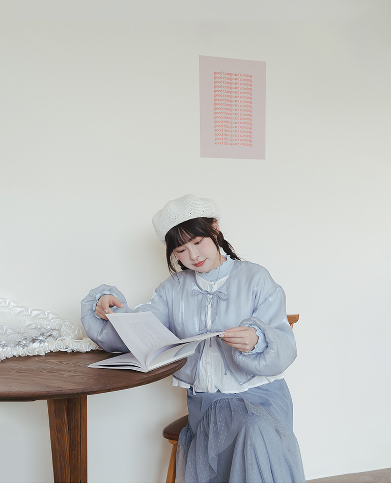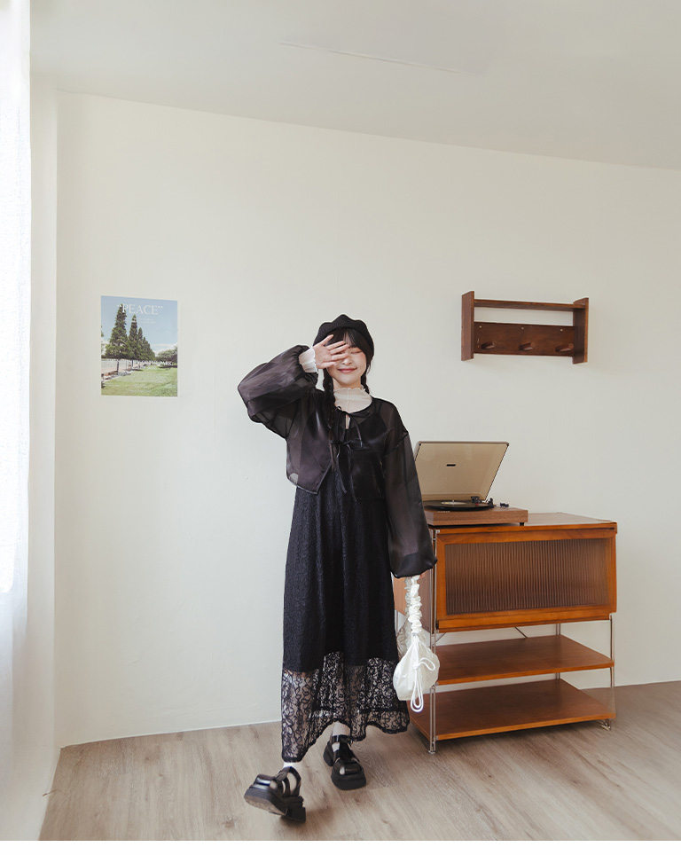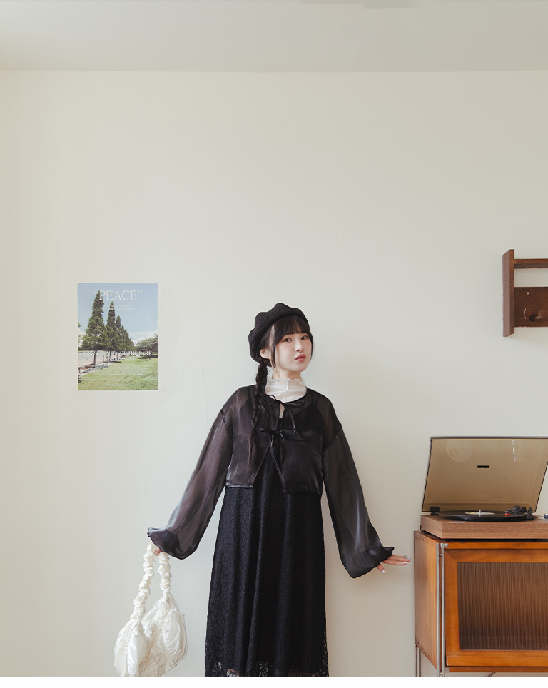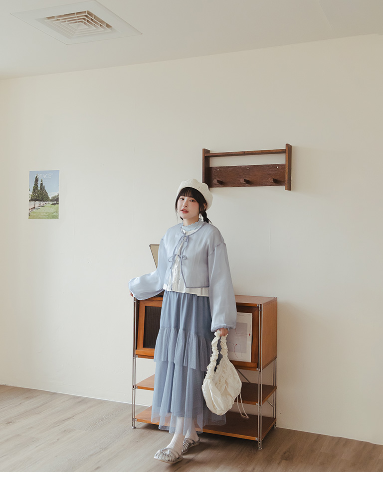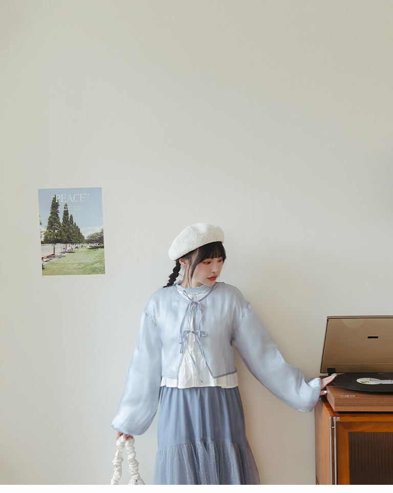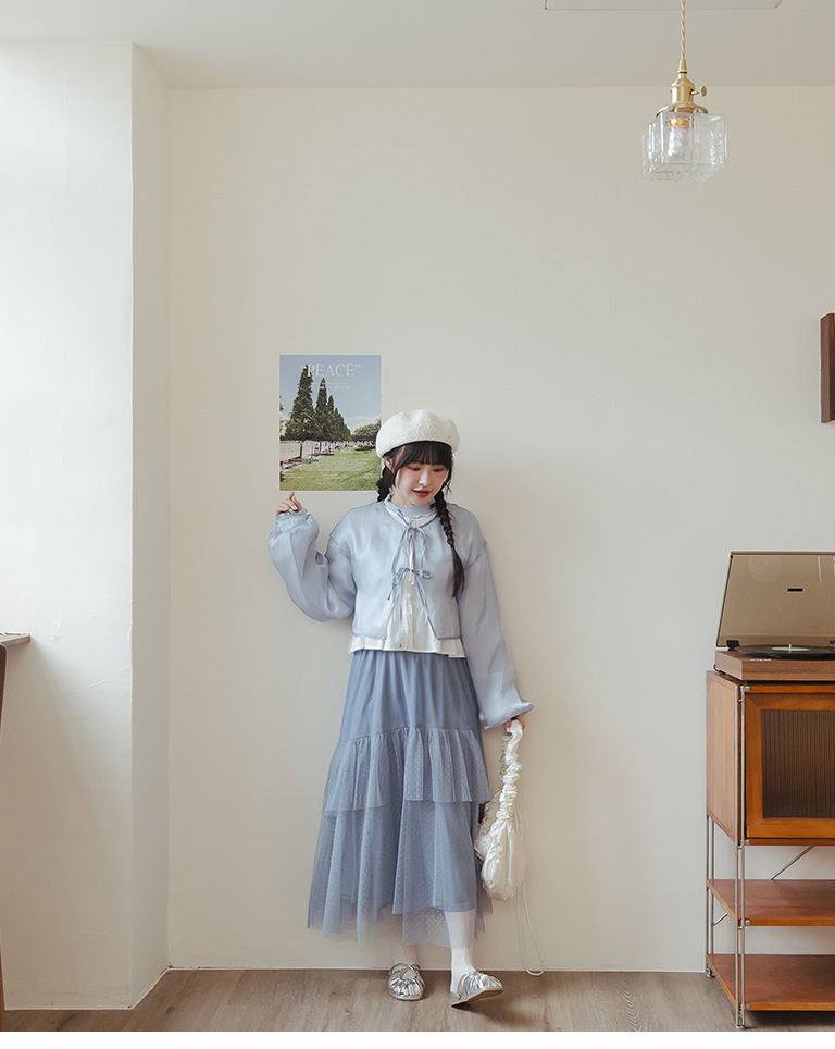 光澤透膚網紗雙綁帶罩衫 兩色售