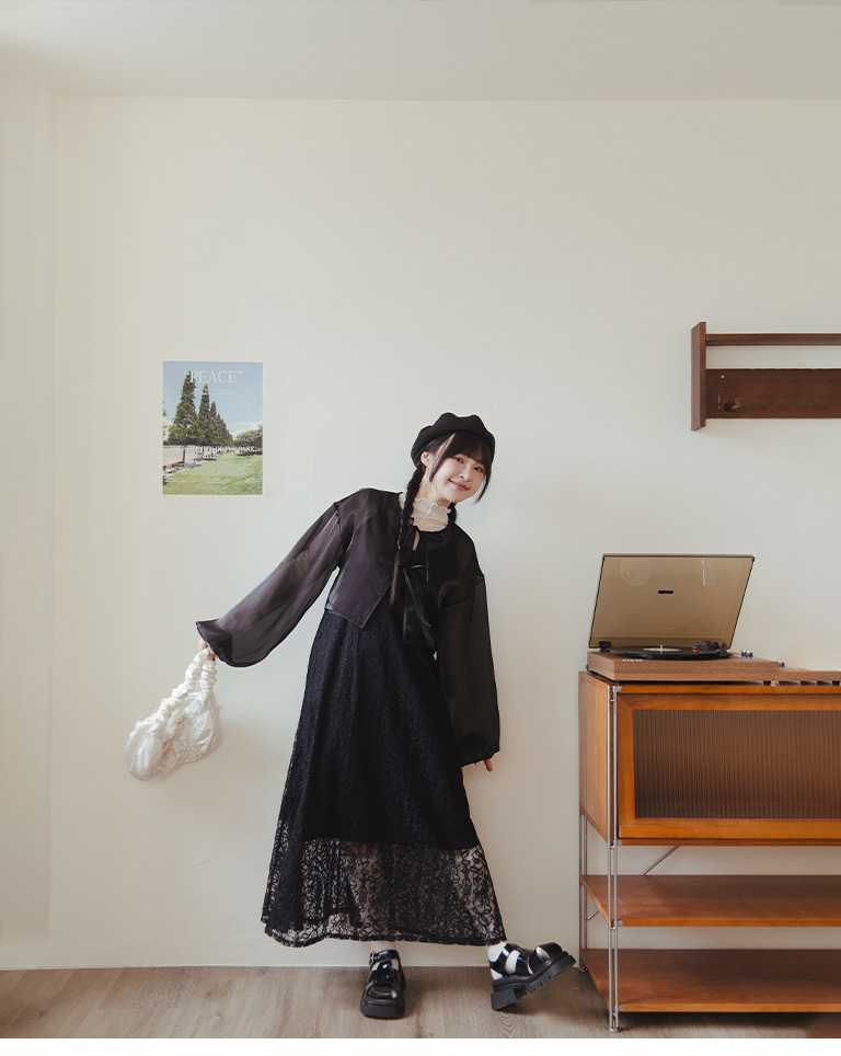 S~L身形實測!分尺寸皺皺木耳邊透膚高領長袖上衣