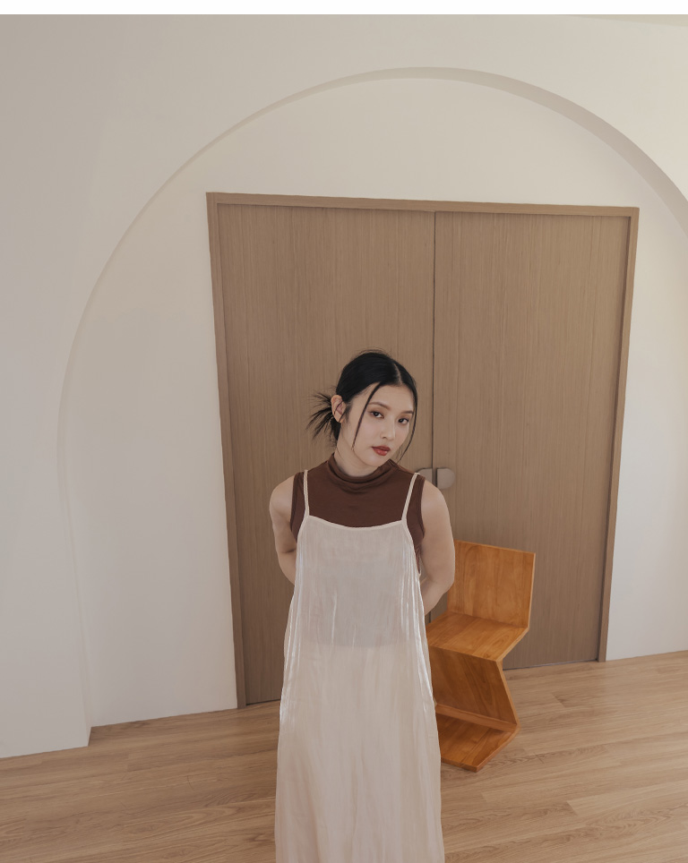 S~L身形實測!分尺寸皺皺木耳邊透膚高領長袖上衣