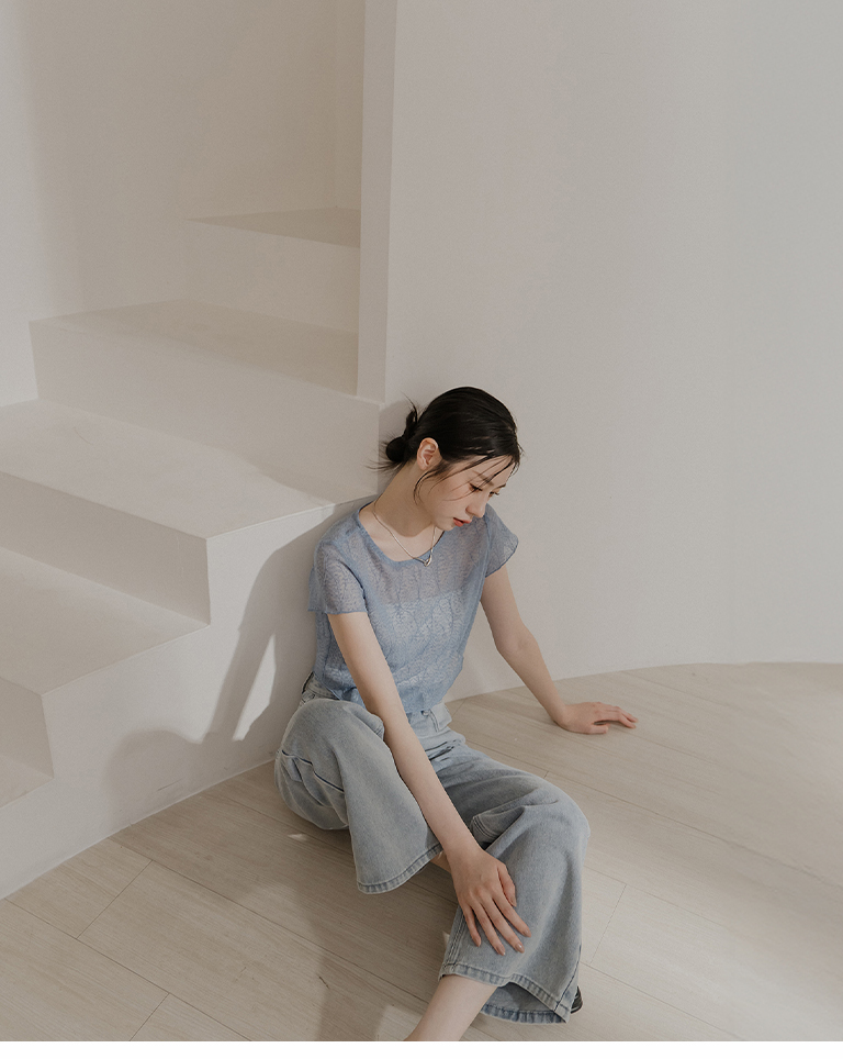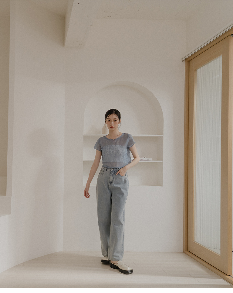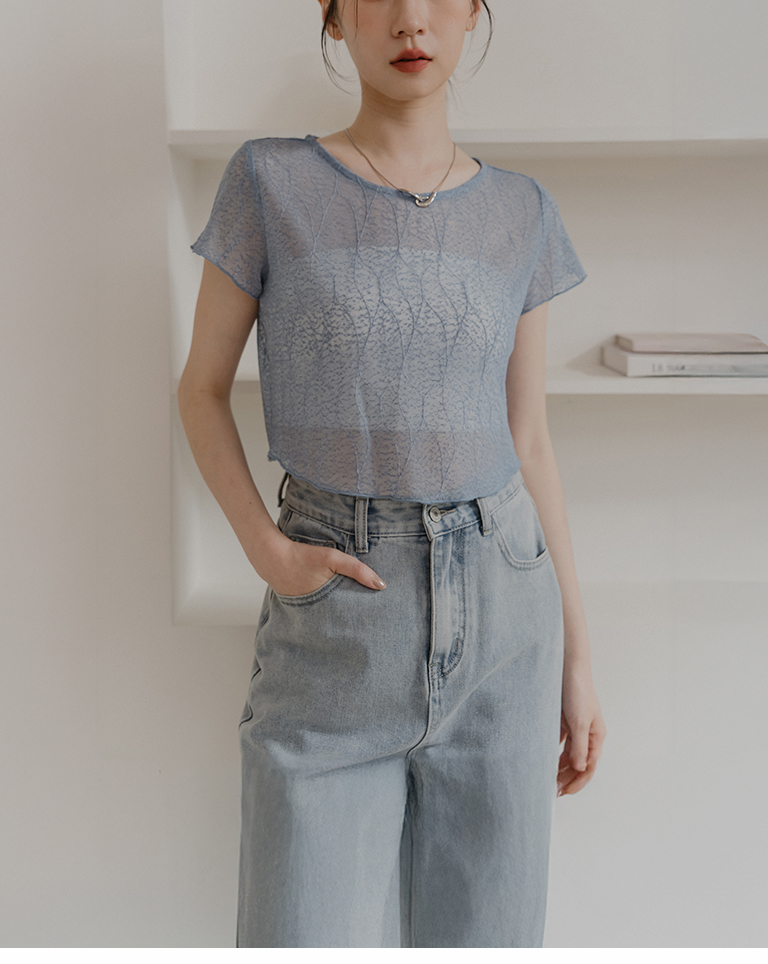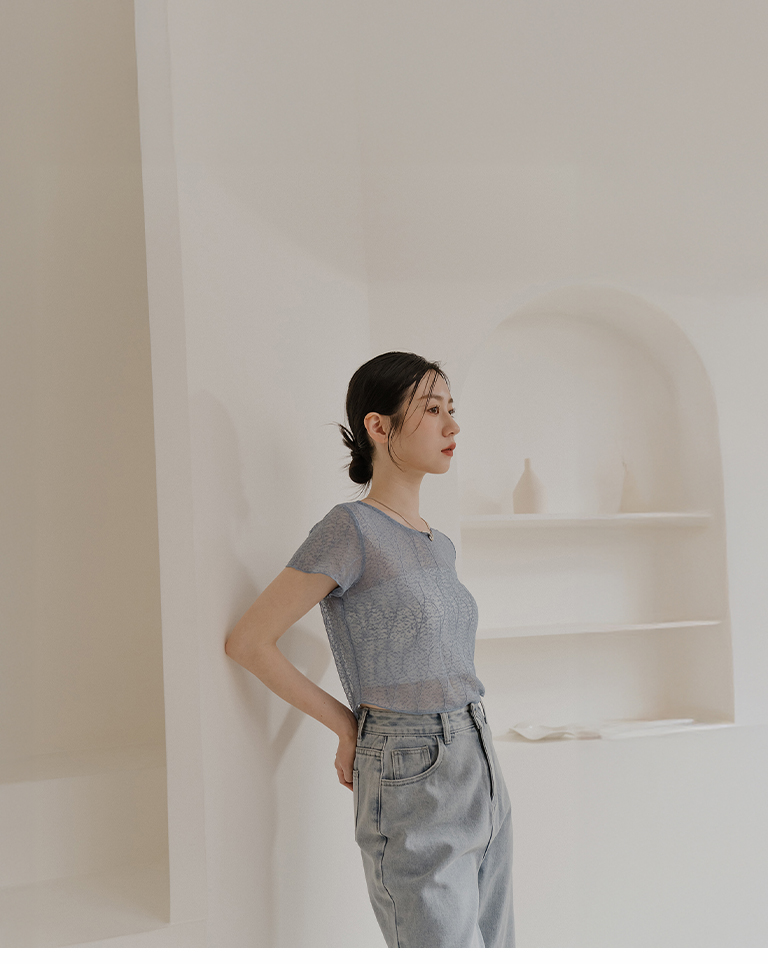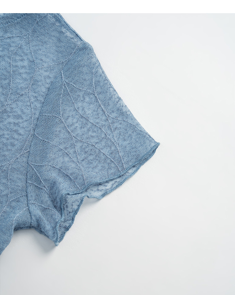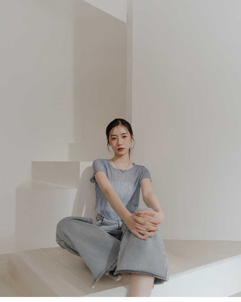 S~L身形實測!分尺寸皺皺木耳邊透膚高領長袖上衣