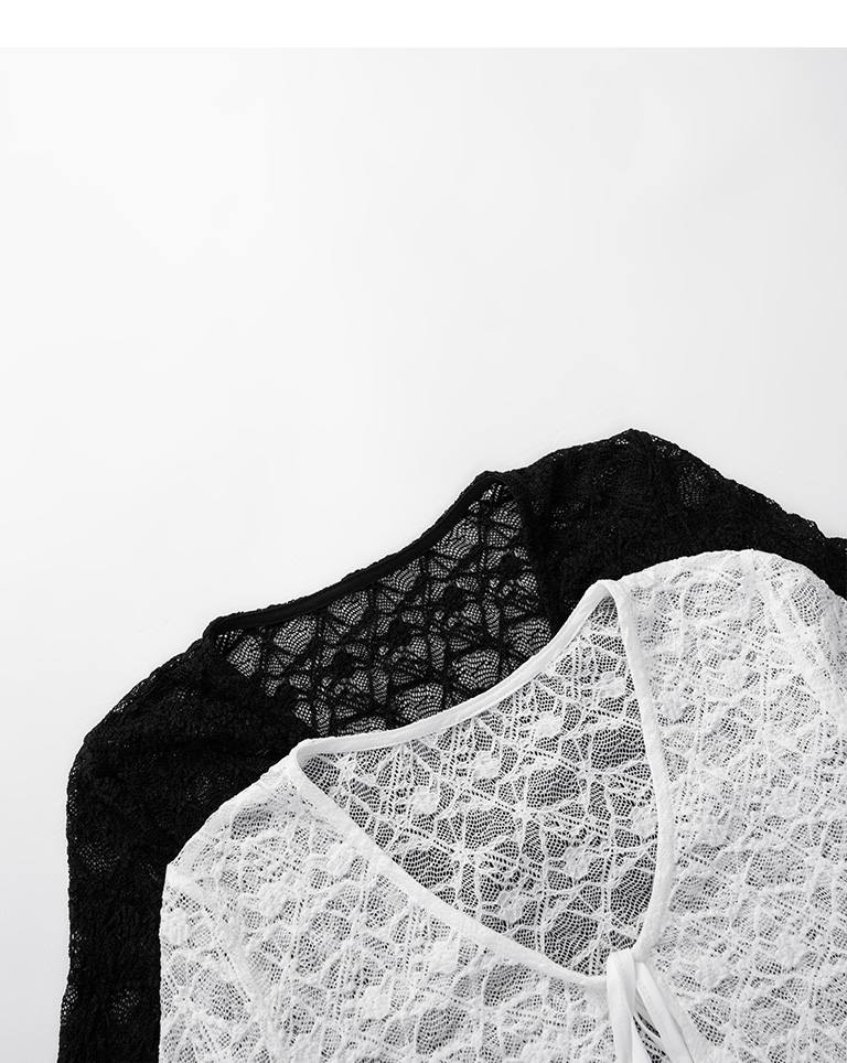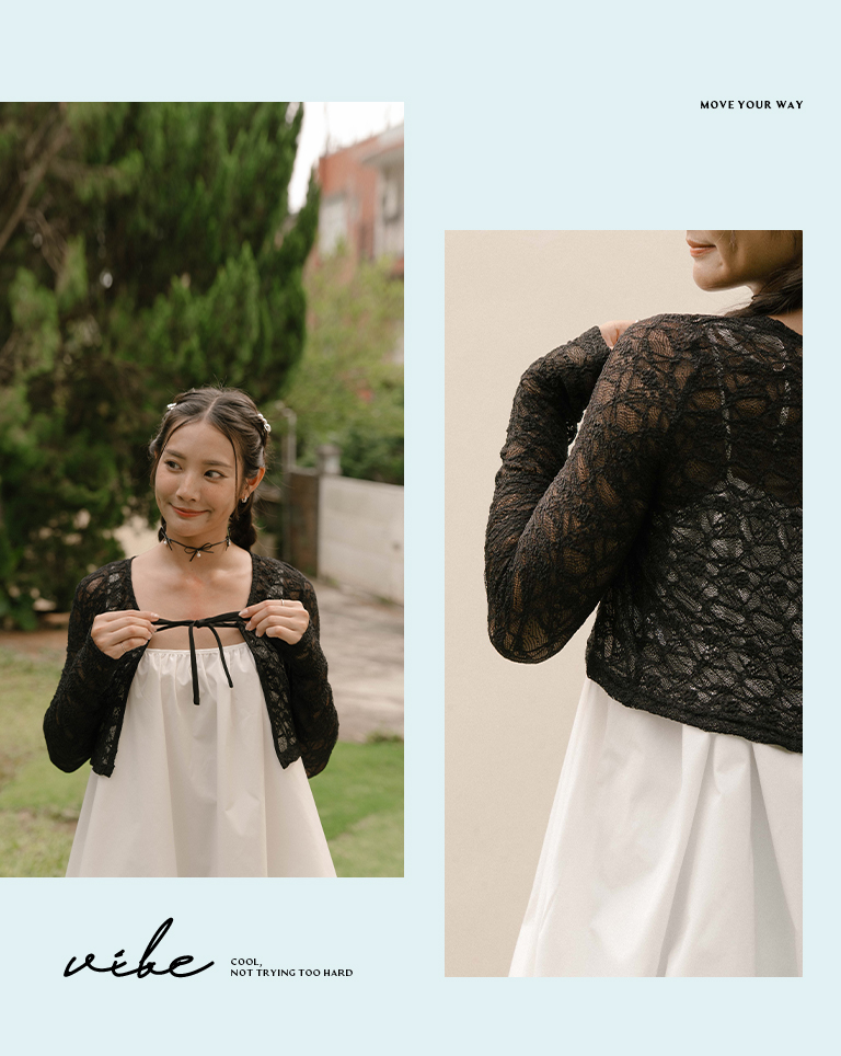 品子聯名 V領蕾絲綁帶短版長袖罩衫