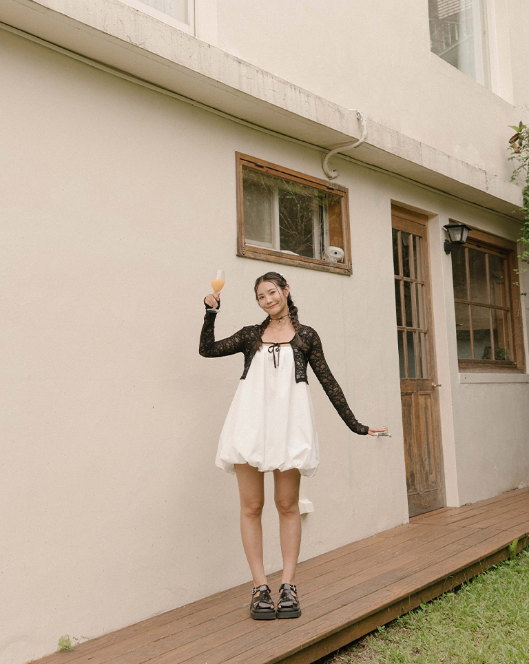 前蝴蝶結綁帶造型 增添穿搭小亮點