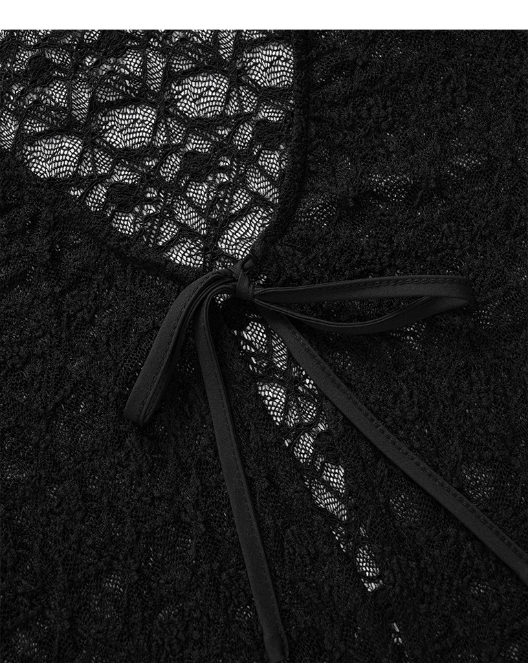 品子聯名 V領蕾絲綁帶短版長袖罩衫-黑