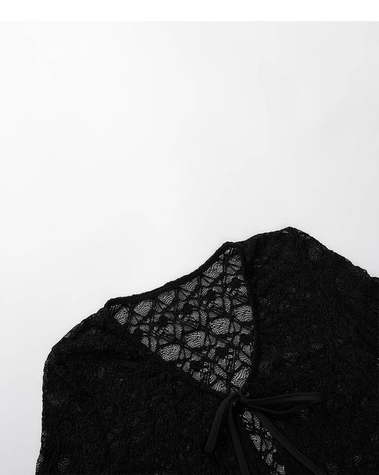 品子聯名 V領蕾絲綁帶短版長袖罩衫