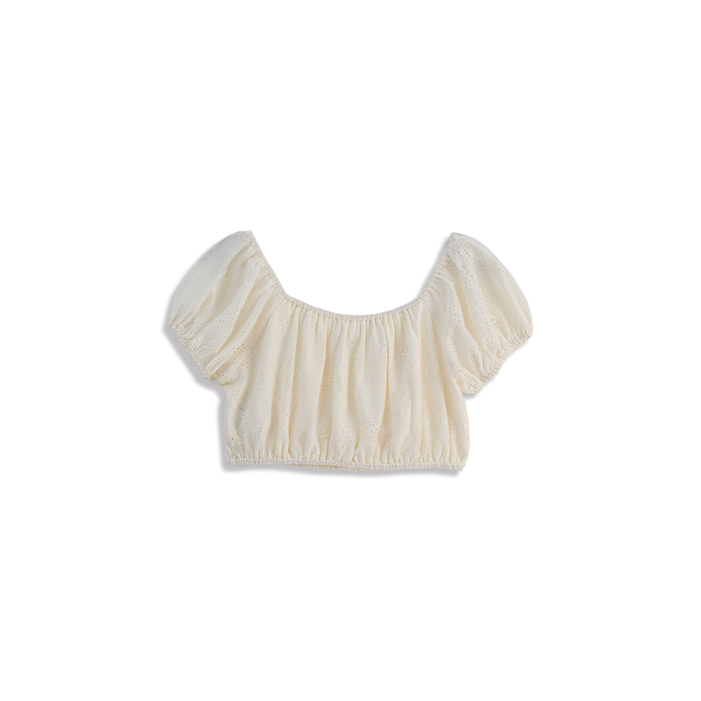 品子聯名 V領蕾絲綁帶短版長袖罩衫-白