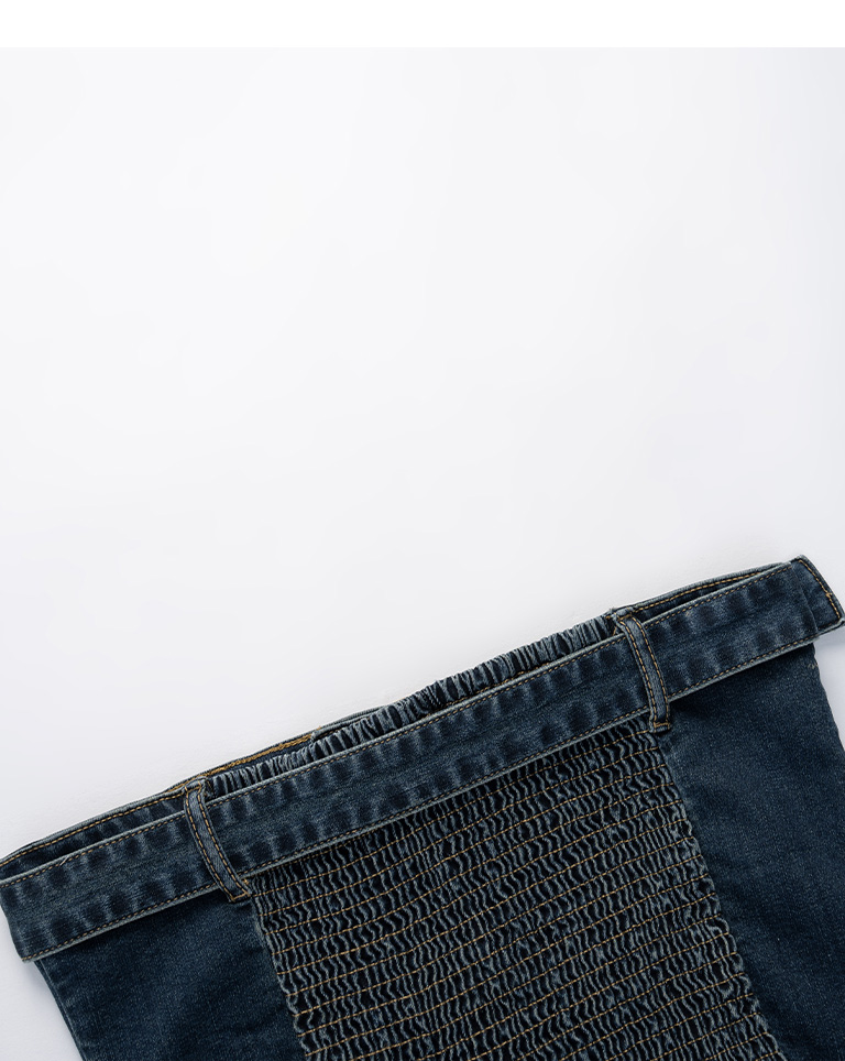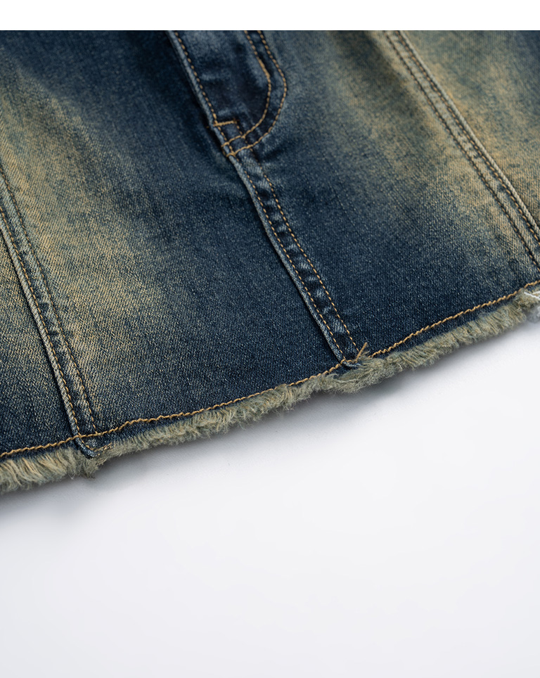 水洗牛仔與下擺抽鬚設計 個性感十足