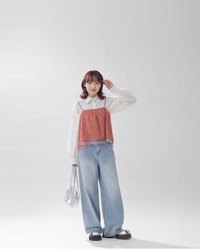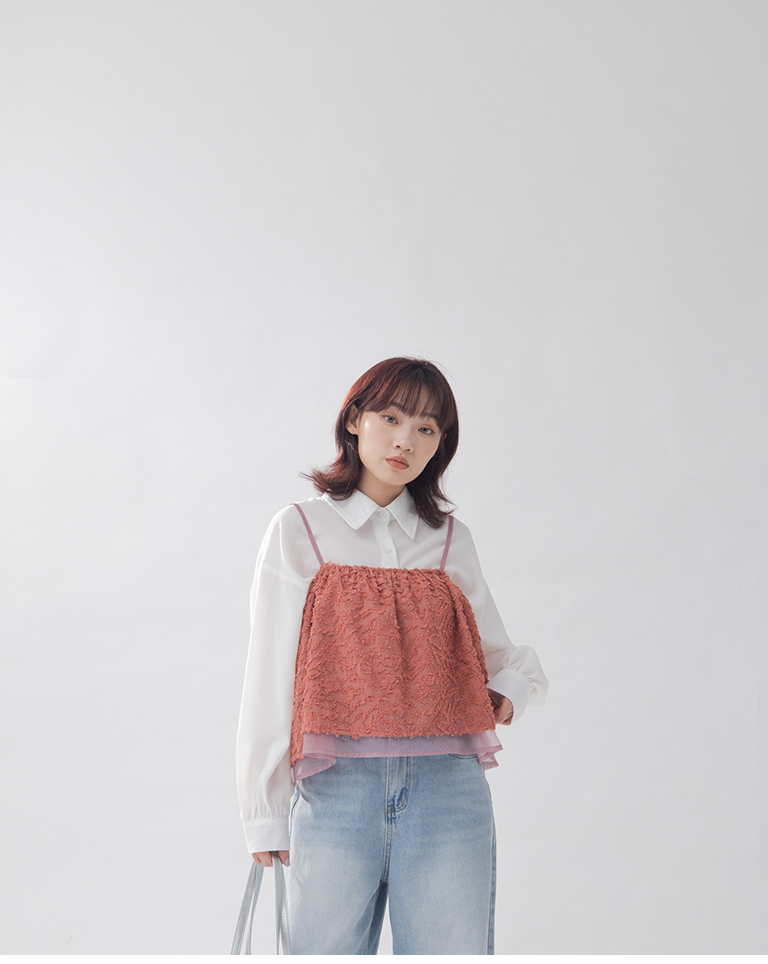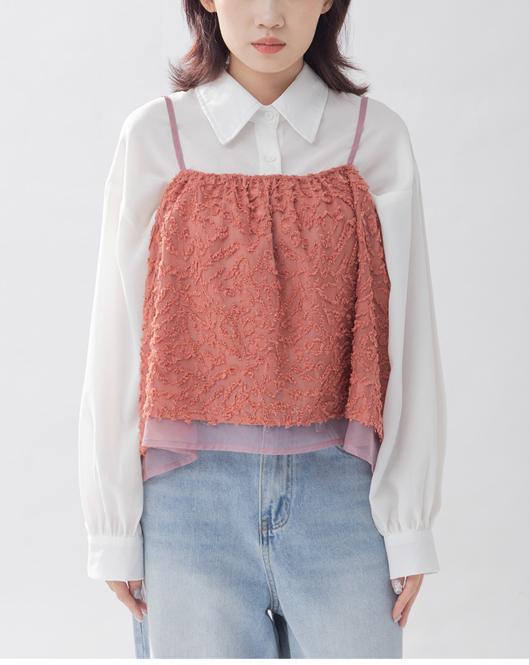 立體毛感紋理雙層細肩背心罩衫
