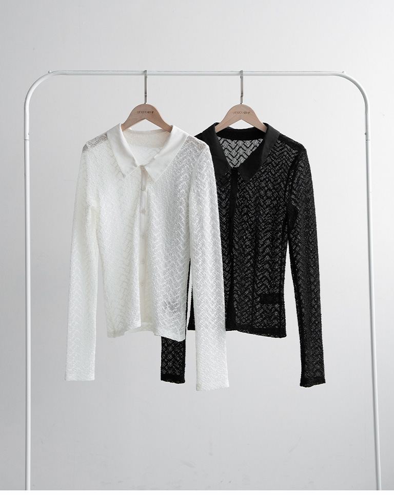 蕾絲鏤空排釦造型針織上衣
