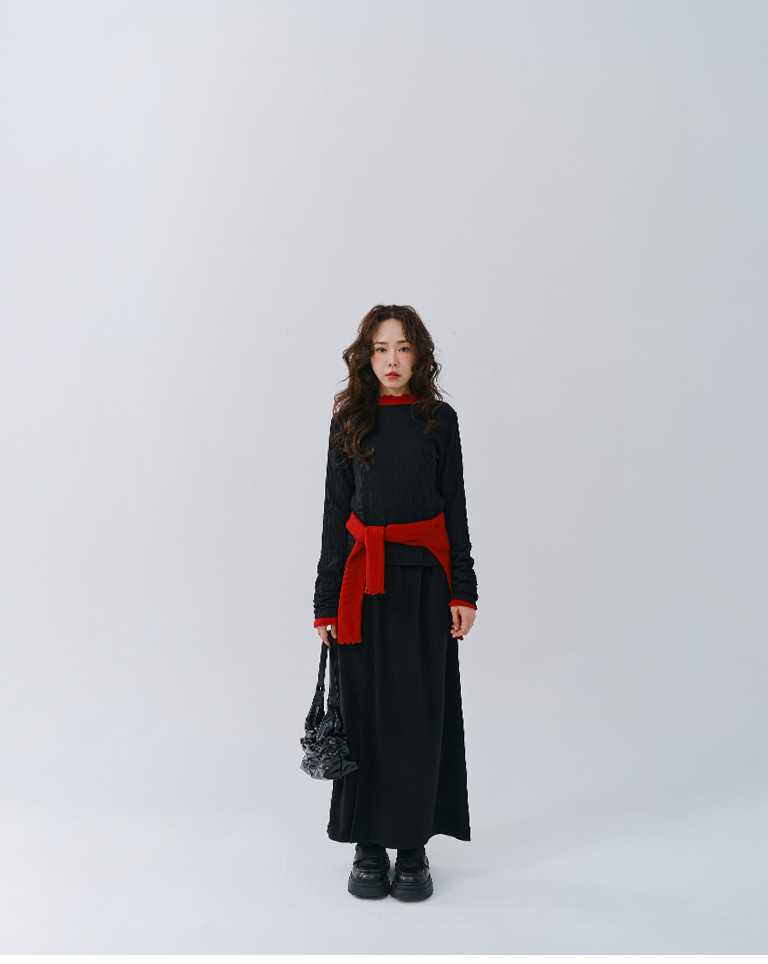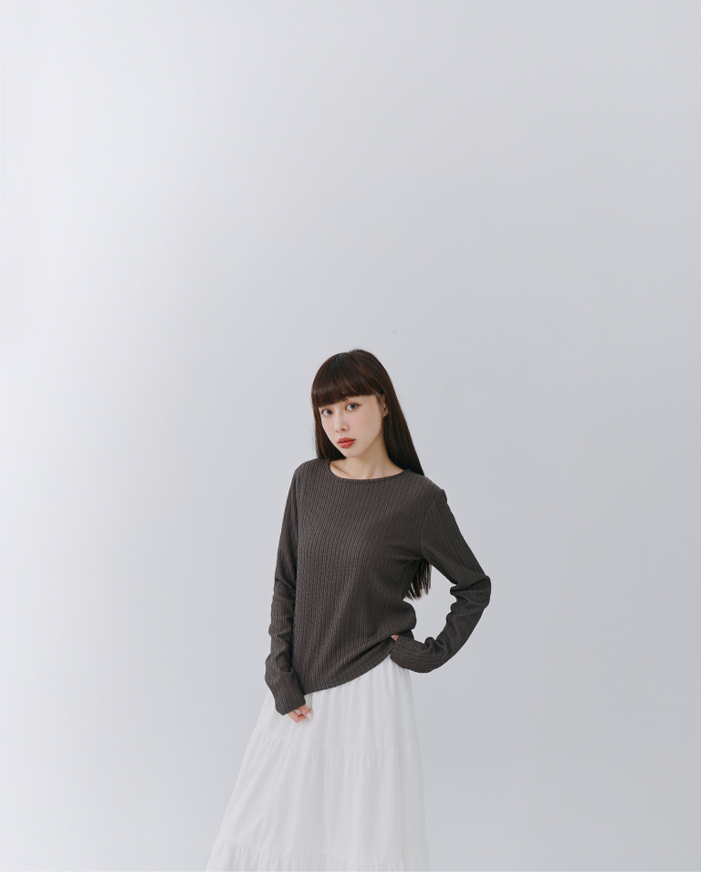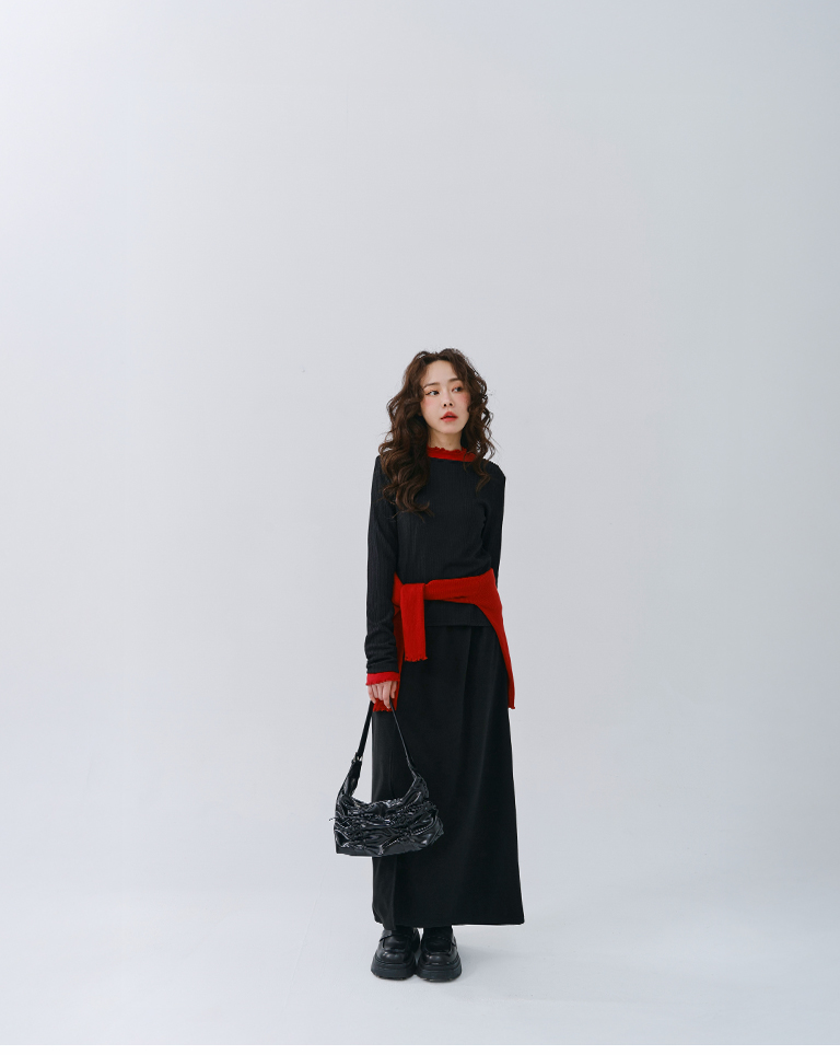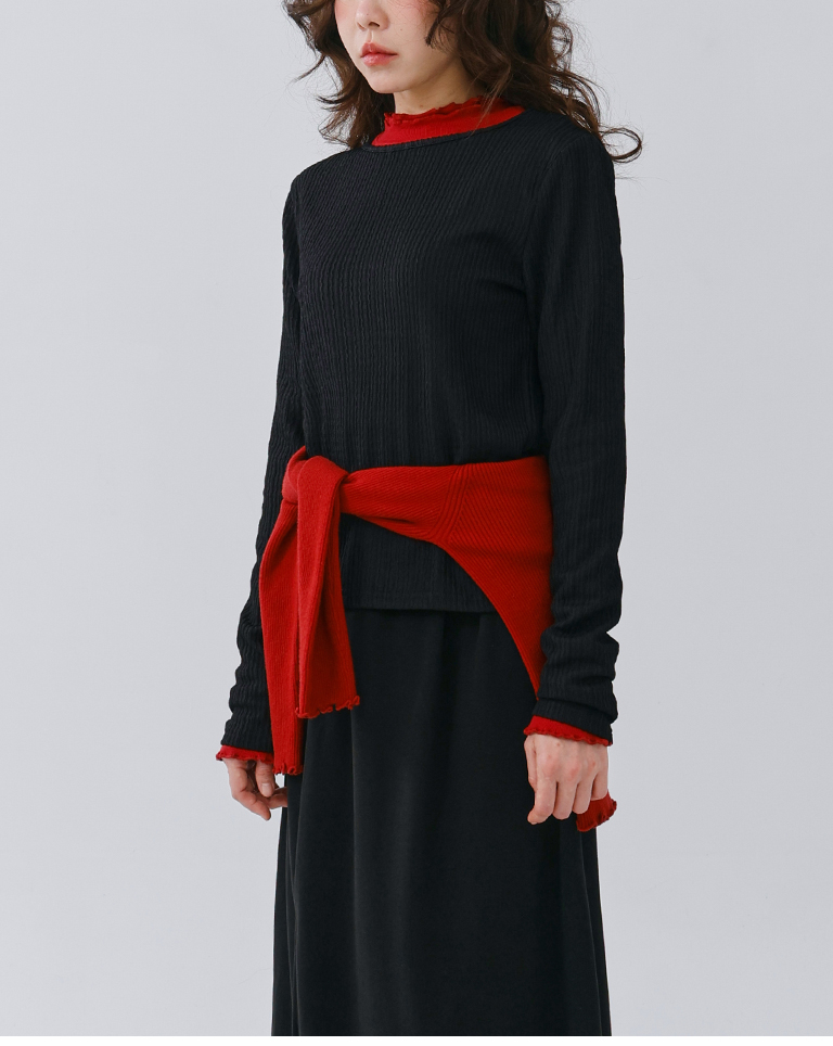 S~L身形實測!分尺寸皺皺木耳邊透膚高領長袖上衣