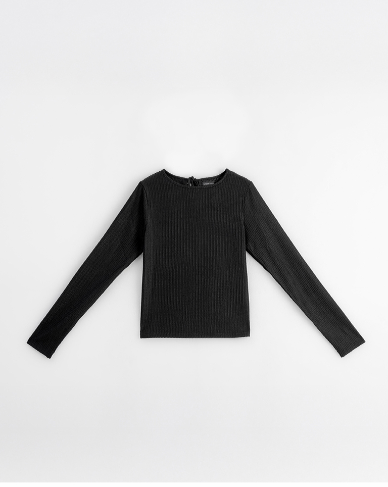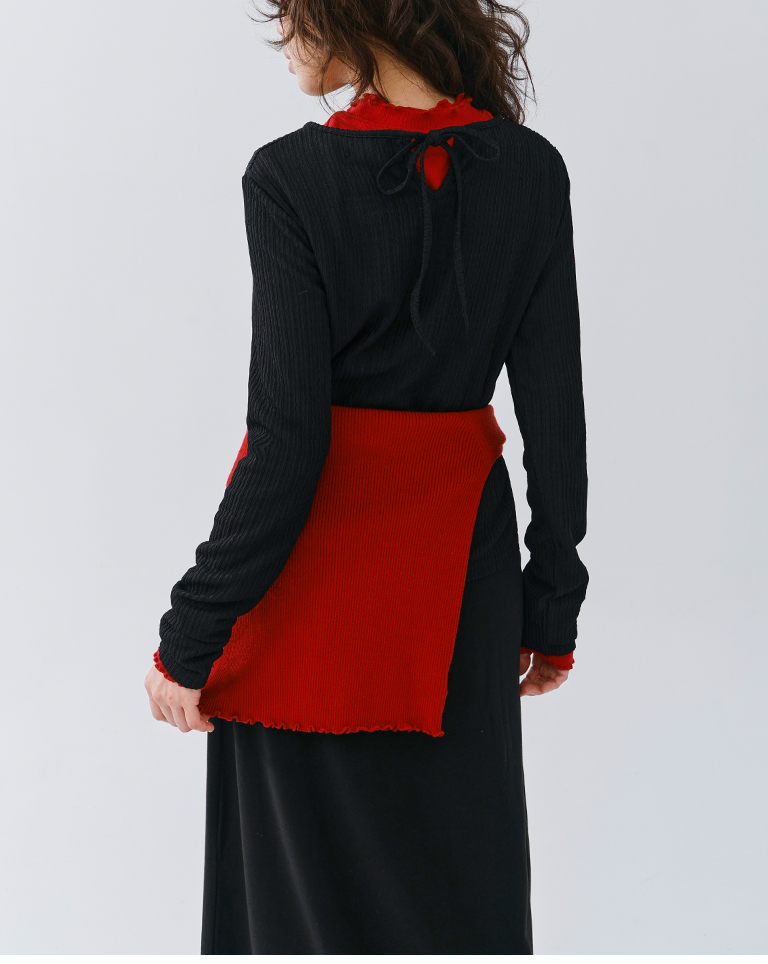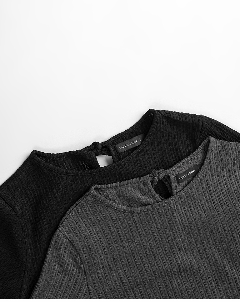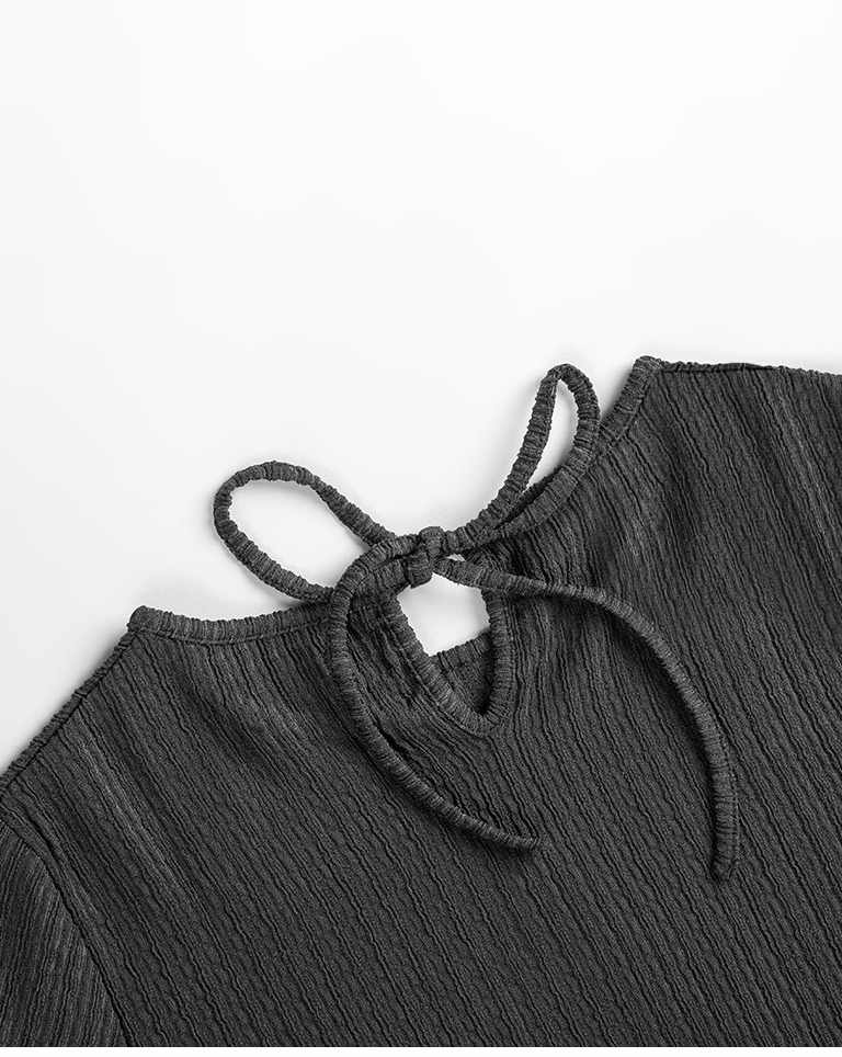 後綁帶立體鏤空紋理造型上衣 兩色售