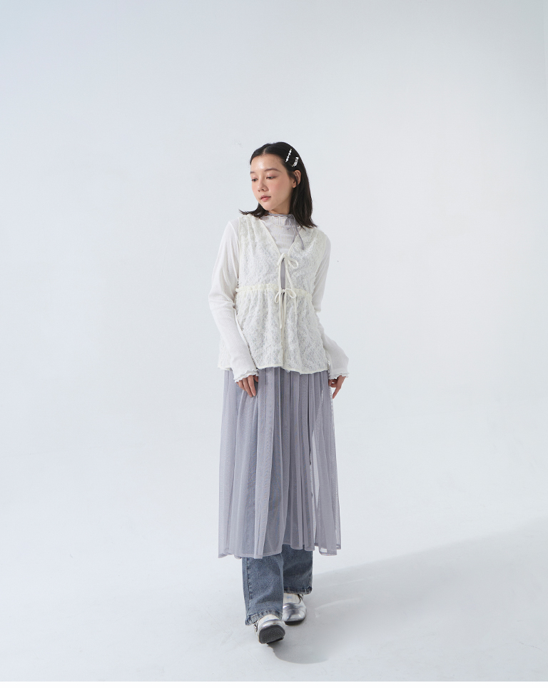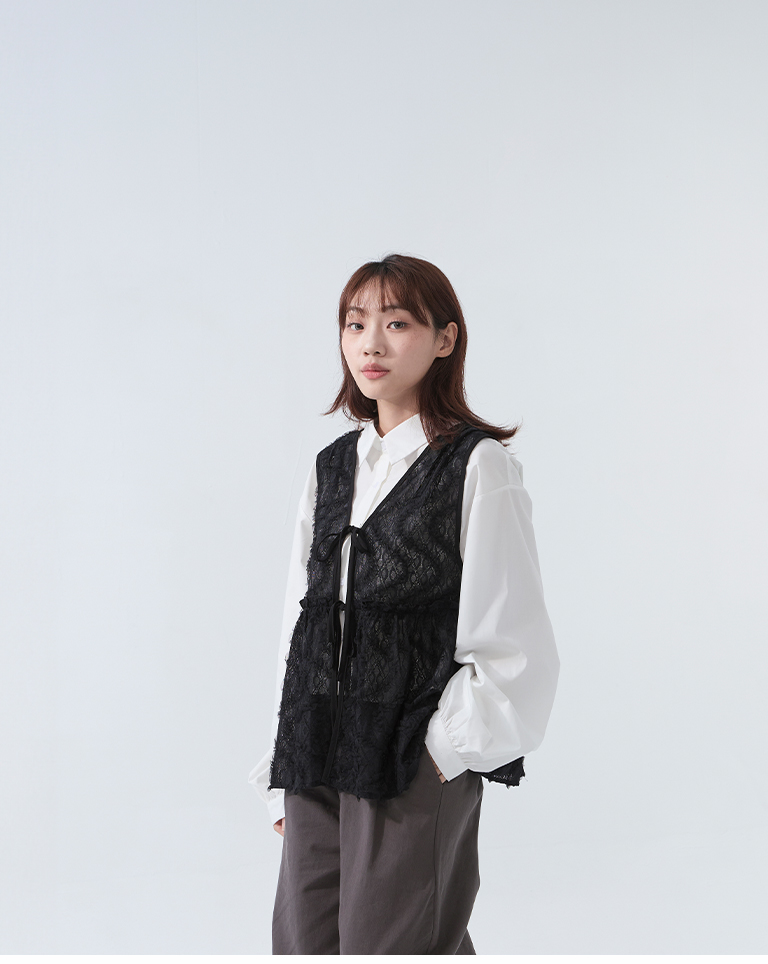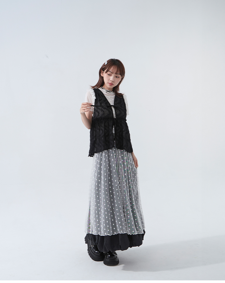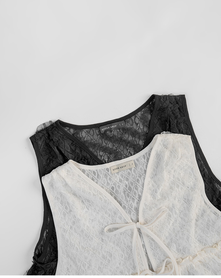 鏤空立體蕾絲緹花綁帶背心 兩色售