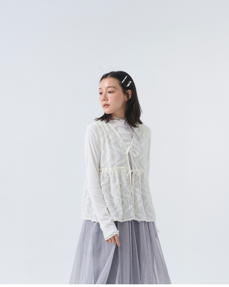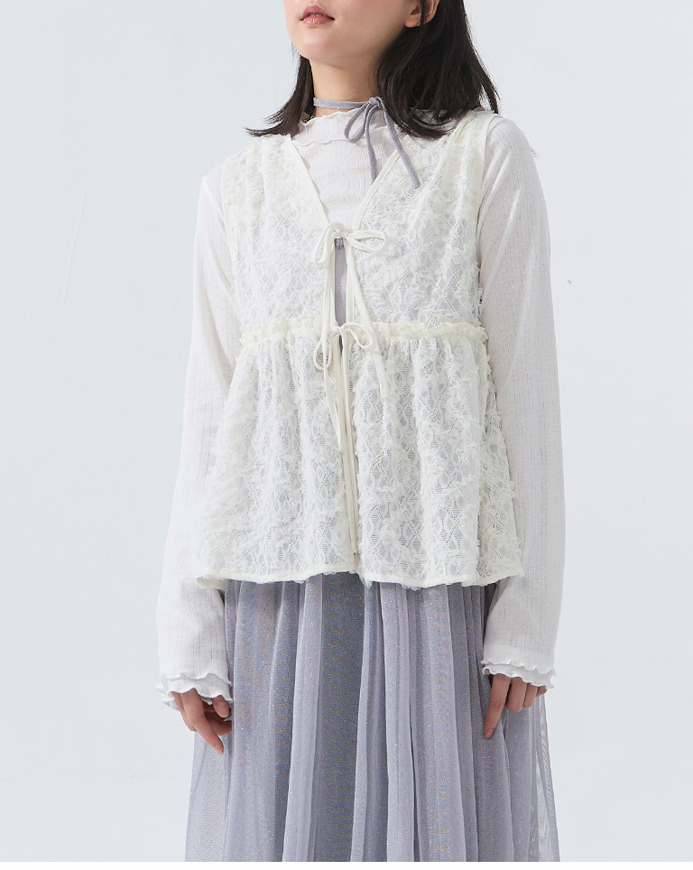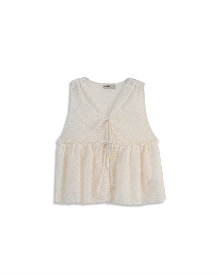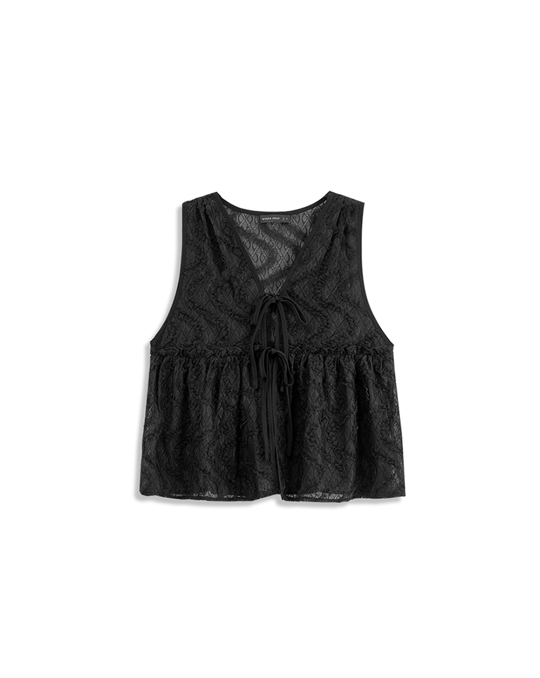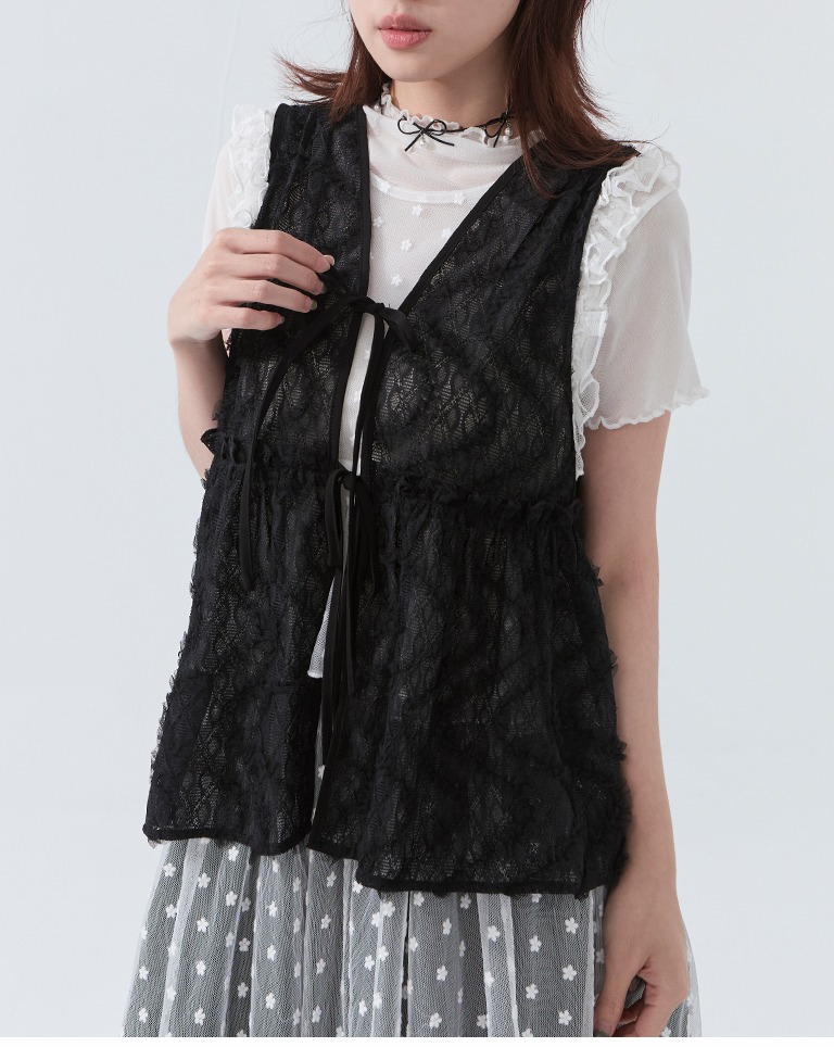 鏤空立體蕾絲緹花綁帶背心