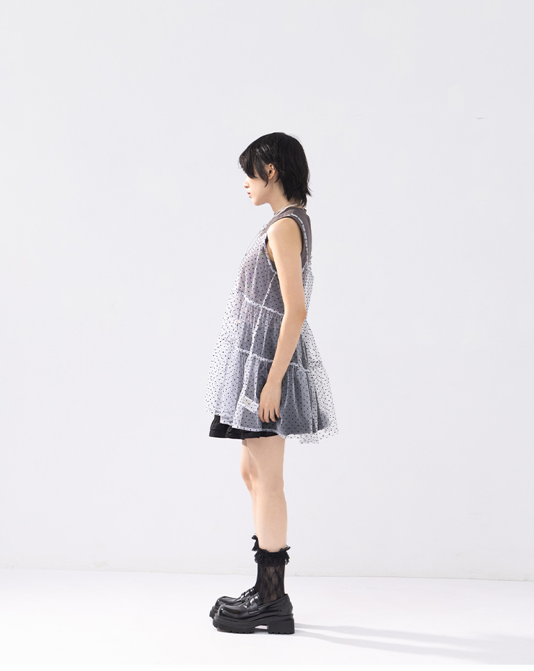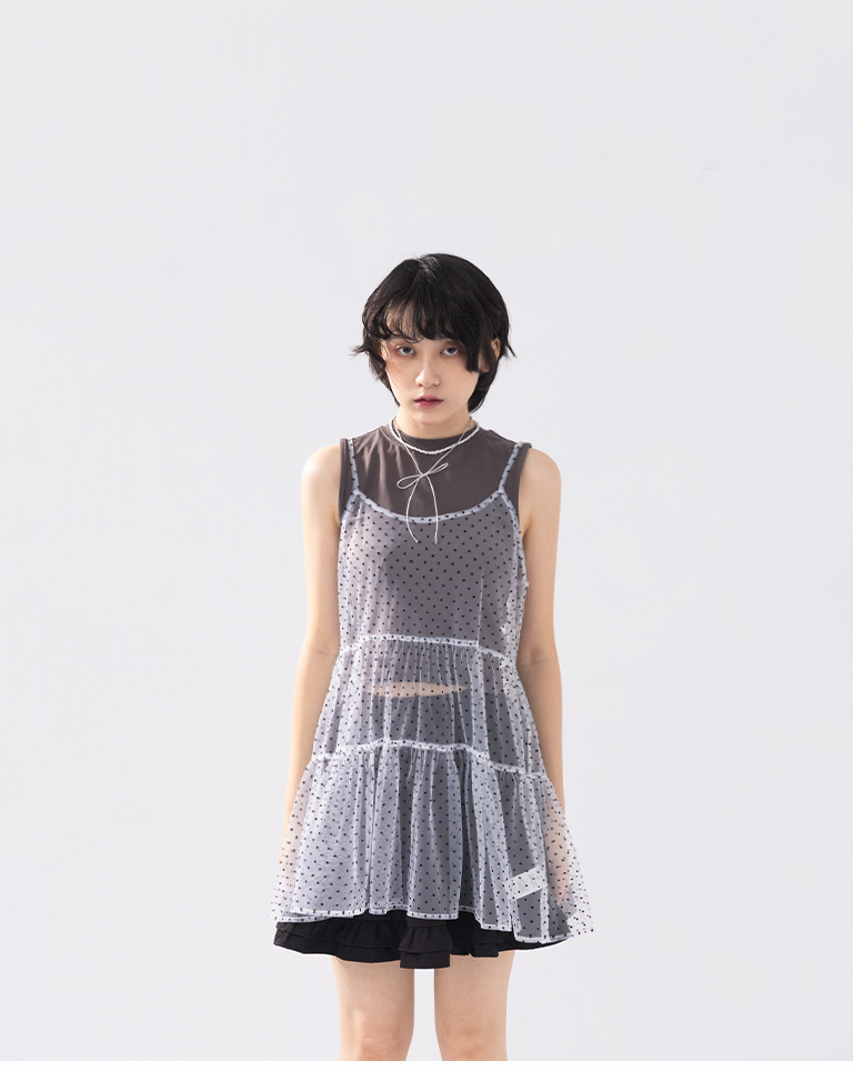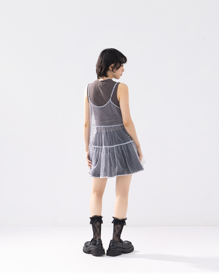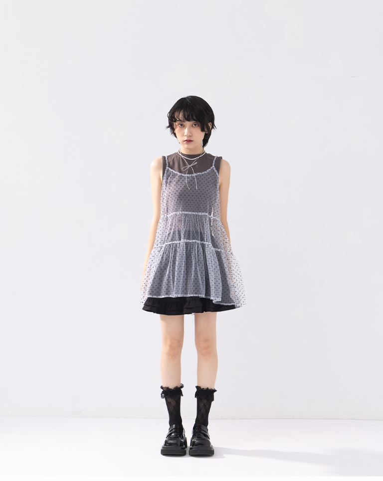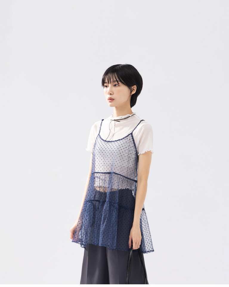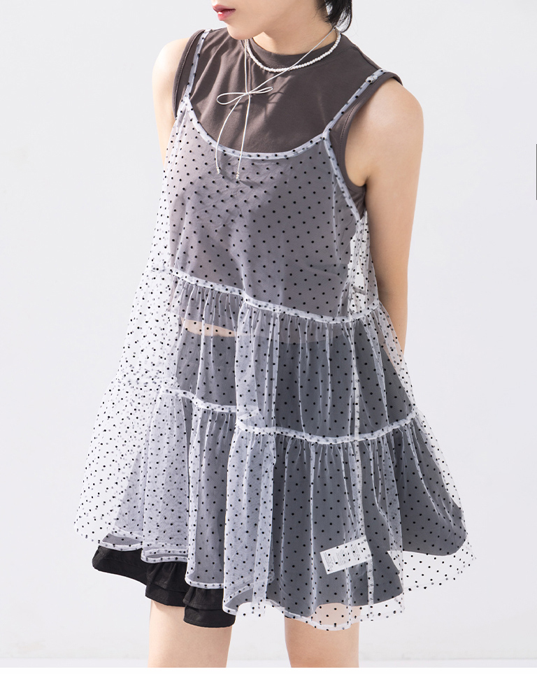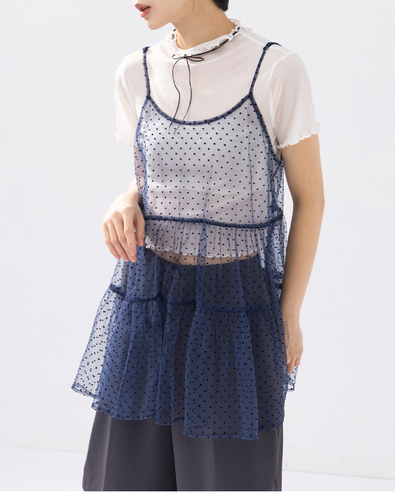 點點蛋糕剪接造型細肩罩衫 兩色售