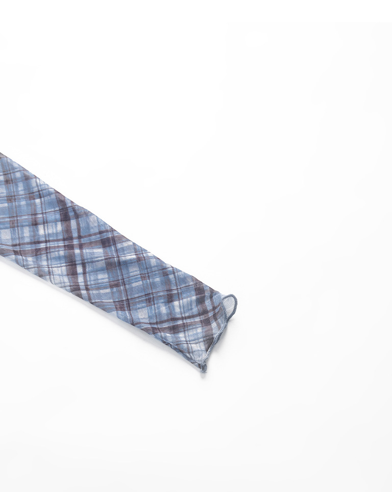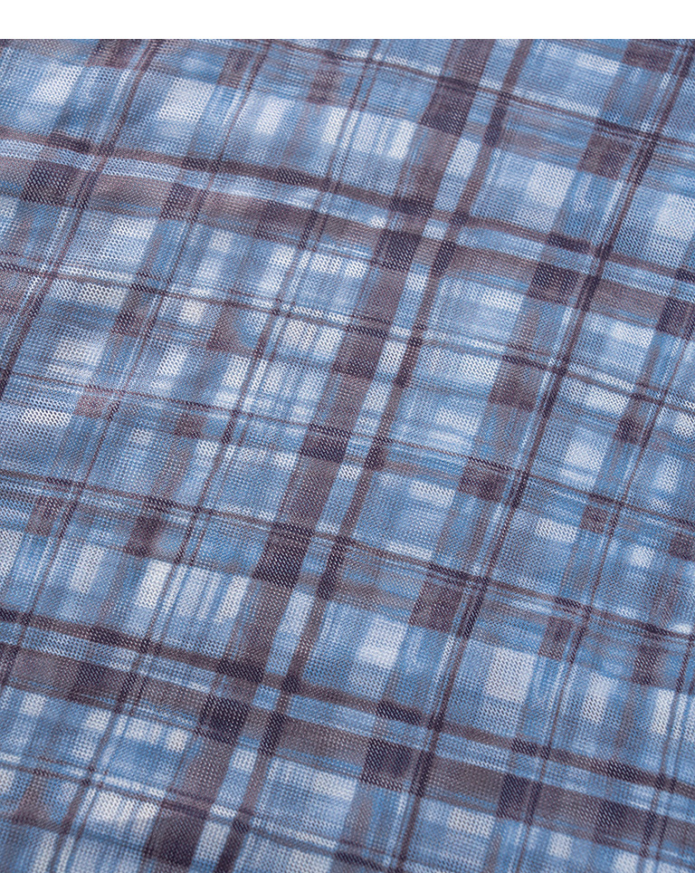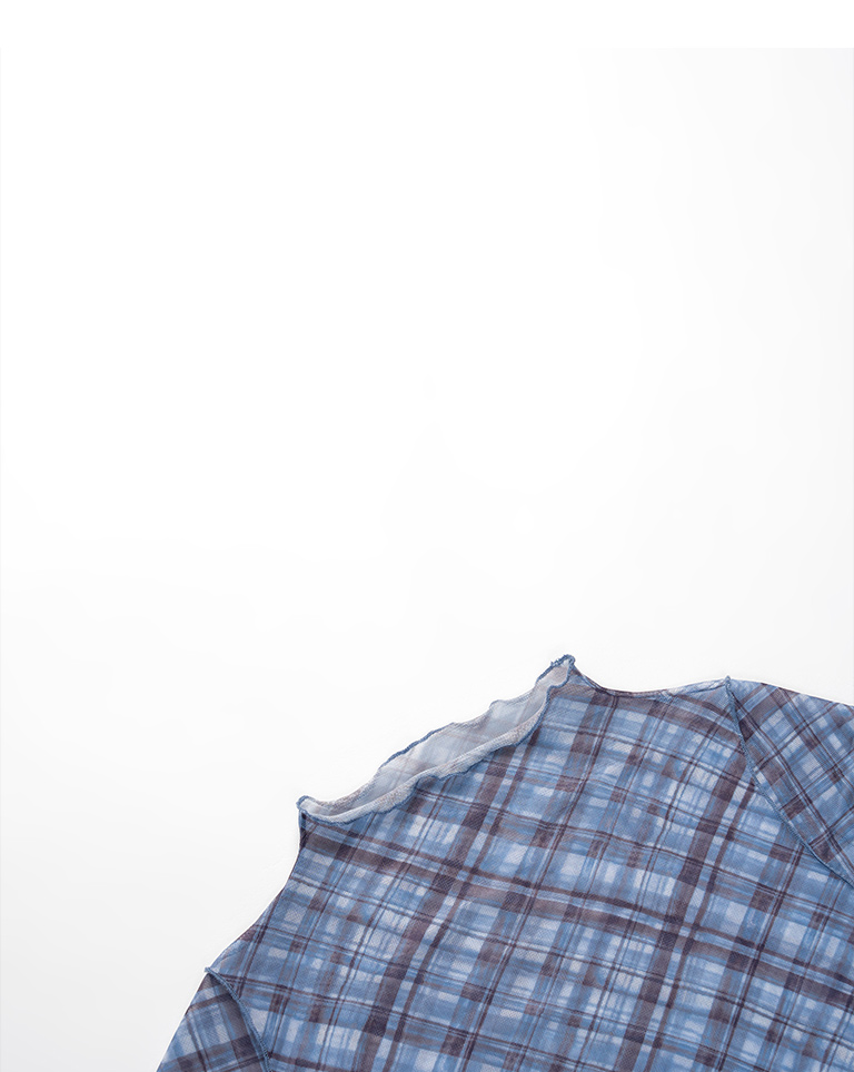 格紋木耳邊網紗透膚長袖上衣