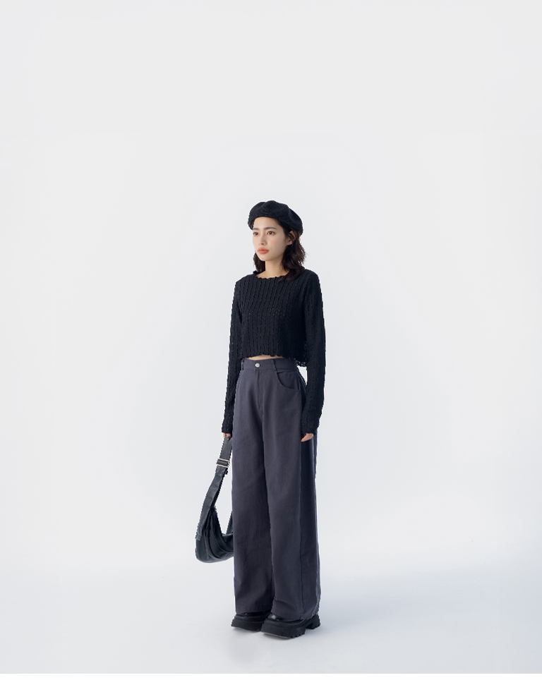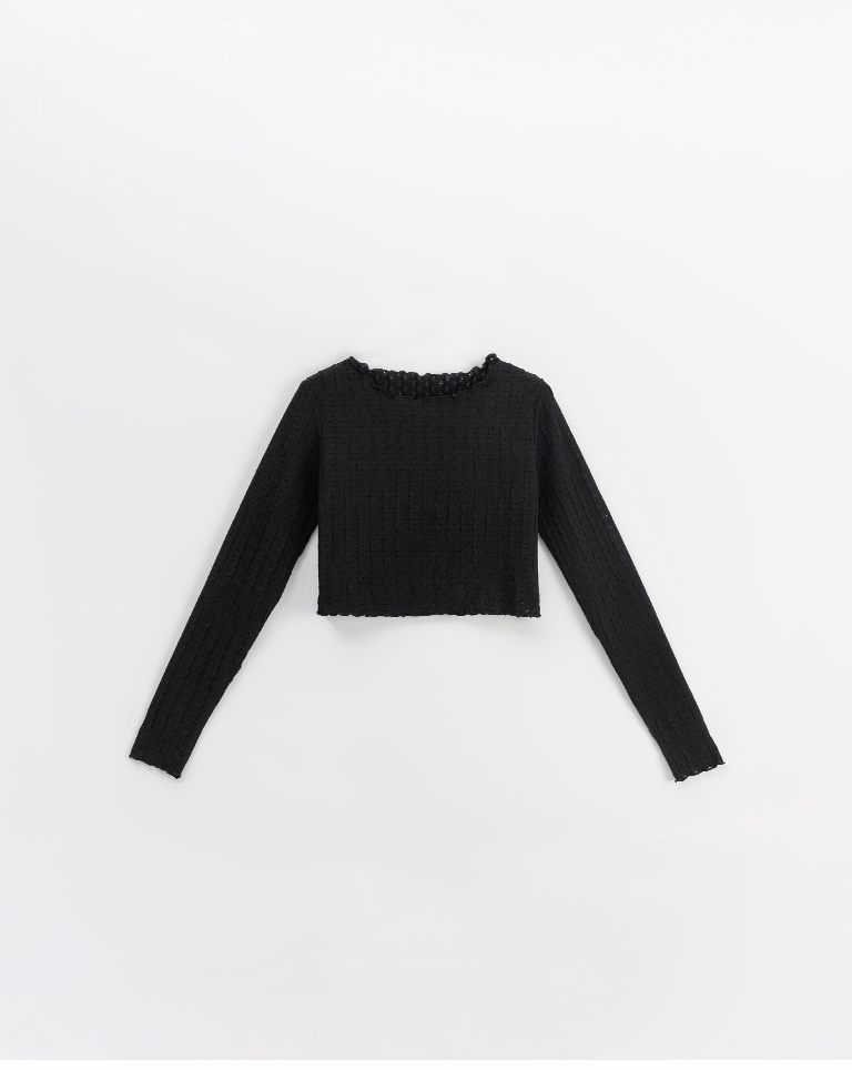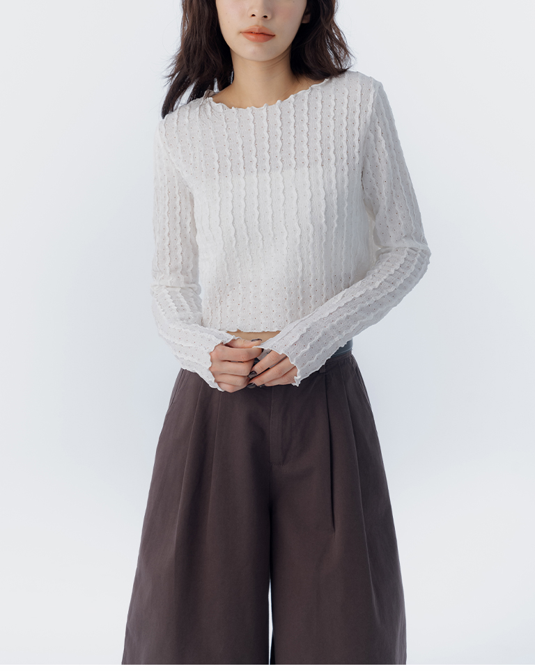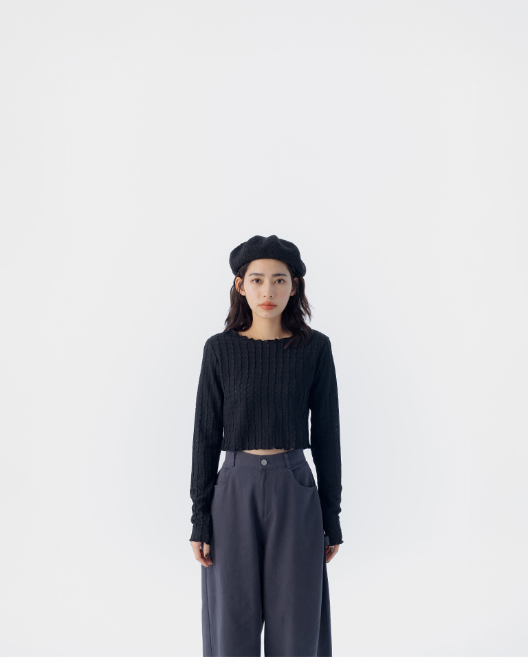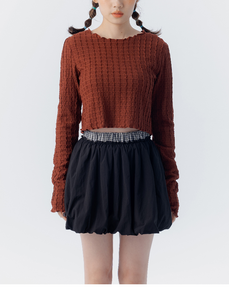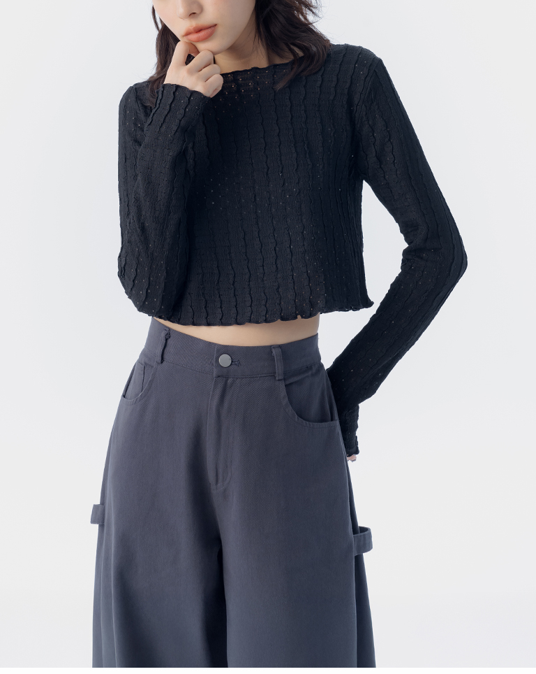 立體波浪紋理短版上衣