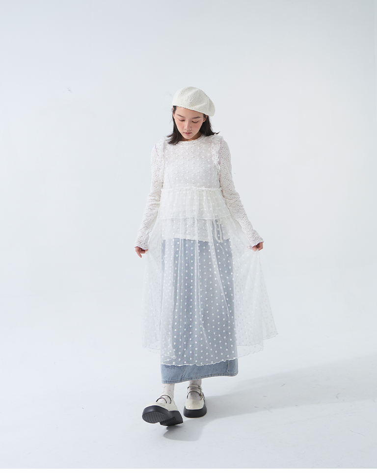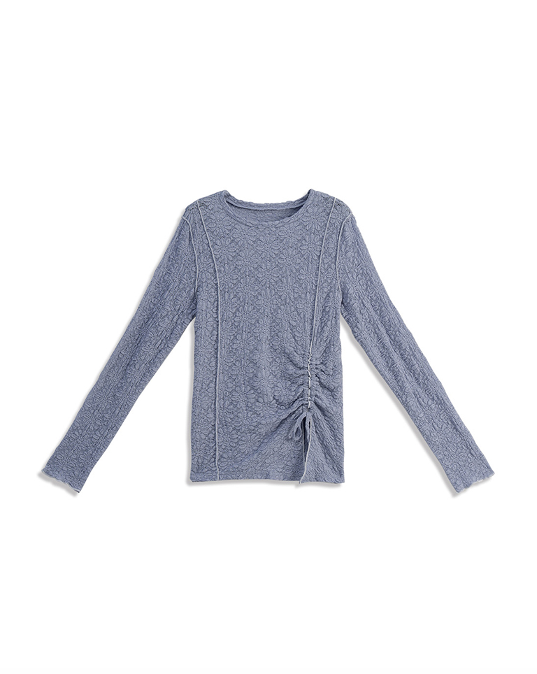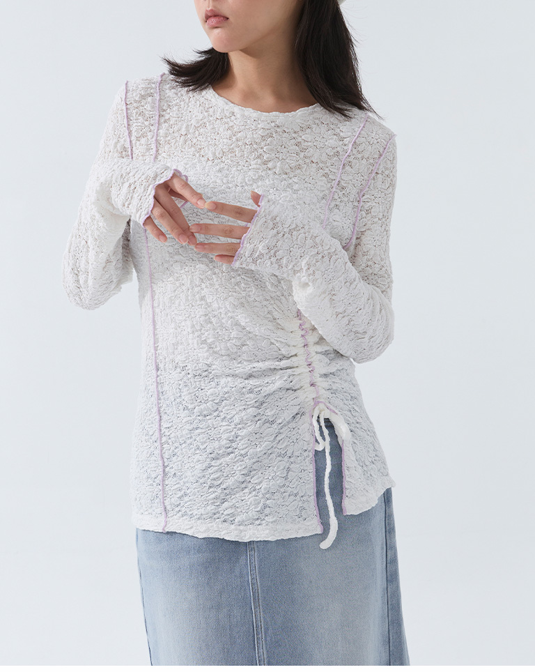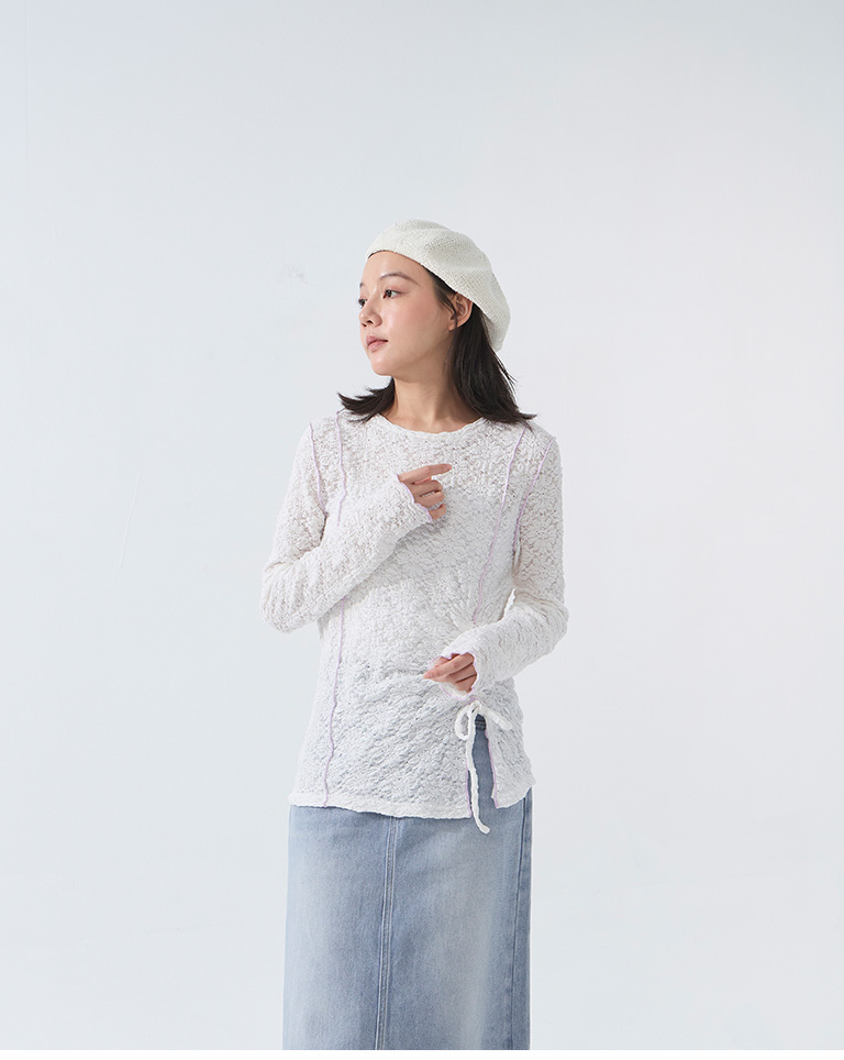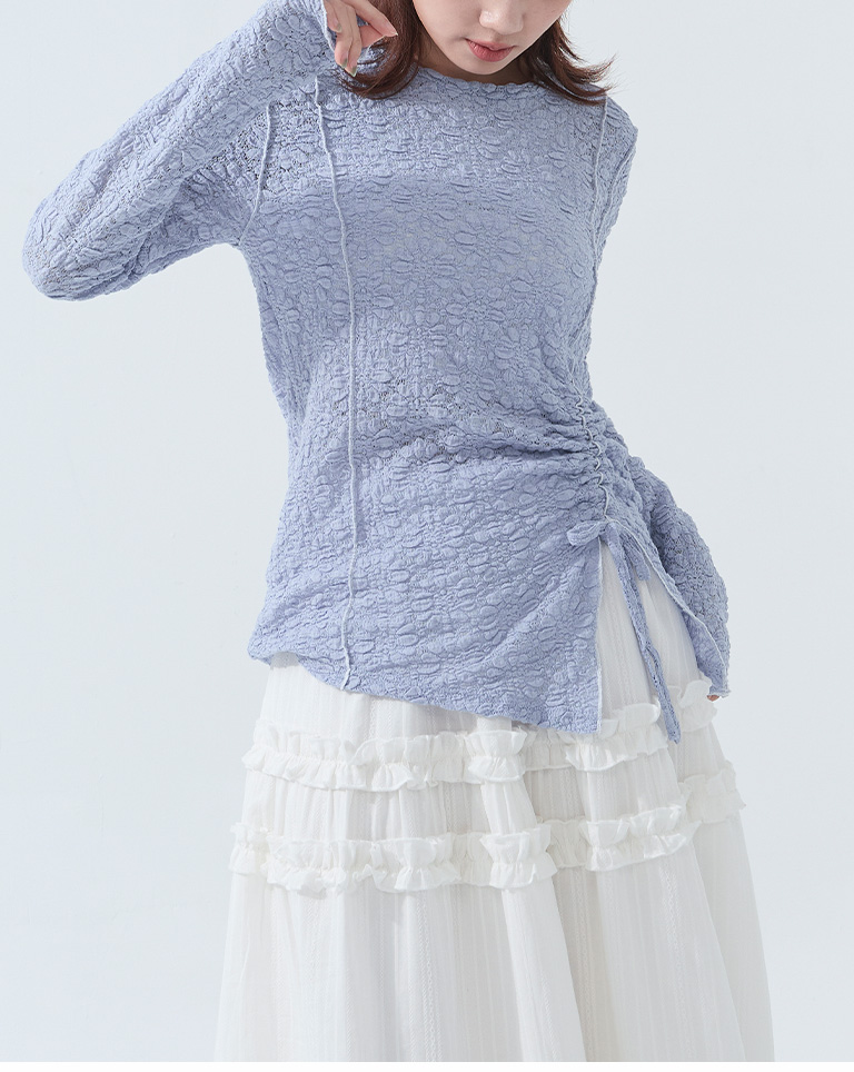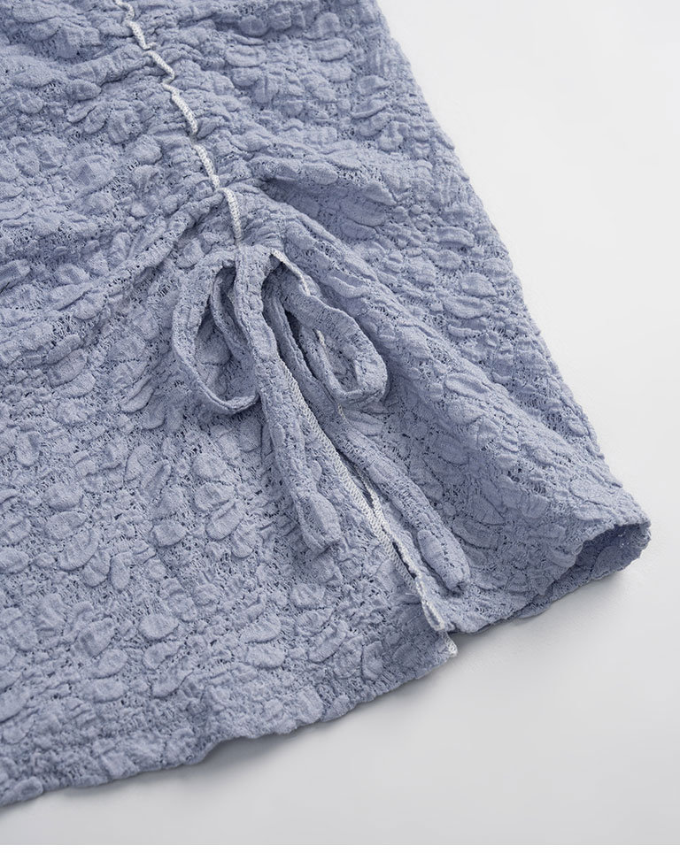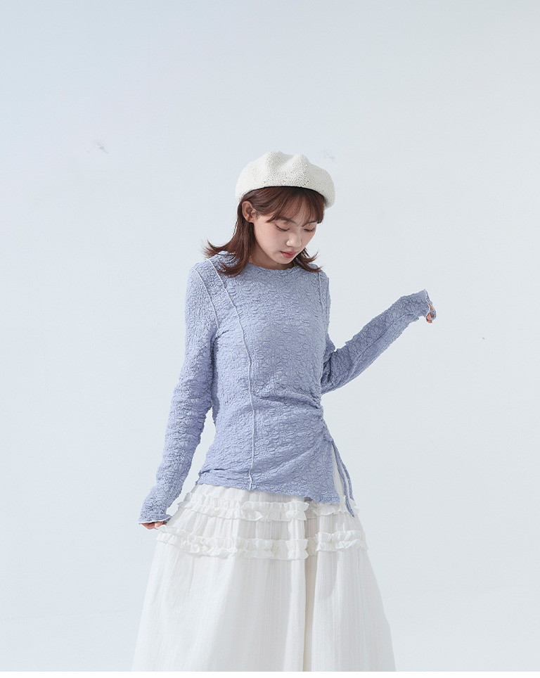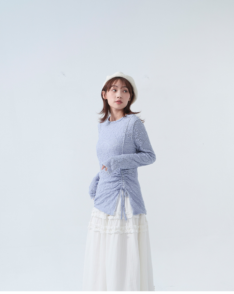 立體緹花抽繩設計木耳邊上衣
