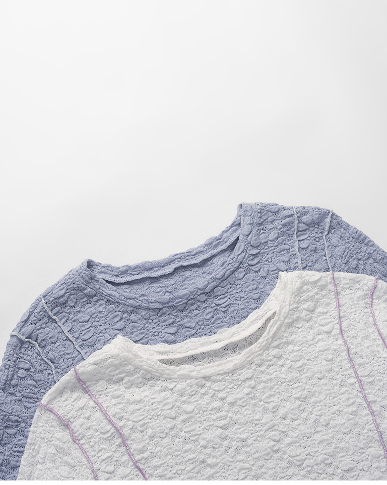 立體緹花抽繩設計木耳邊上衣 兩色售