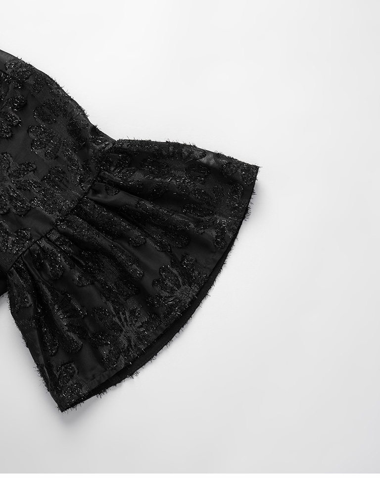 問題 1:請問圖中穿黑色上衣的模特穿的黑色裙子上了沒有? 高品編號是什麼? 謝謝!