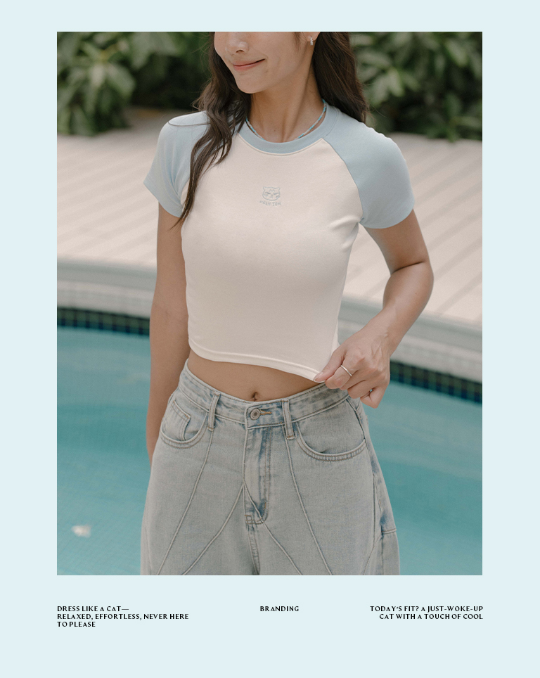 品子聯名 刺繡小圖撞色短版上衣-藍S/M/L