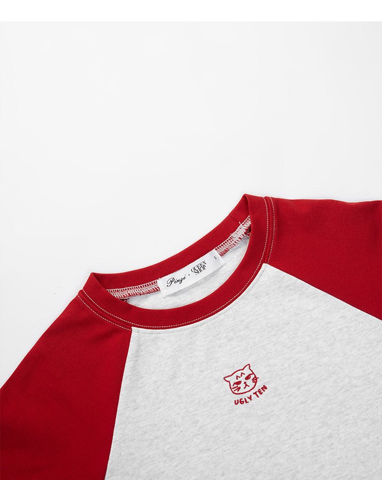 品子聯名 刺繡小圖撞色短版上衣