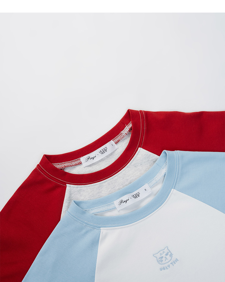 品子聯名 刺繡小圖撞色短版上衣