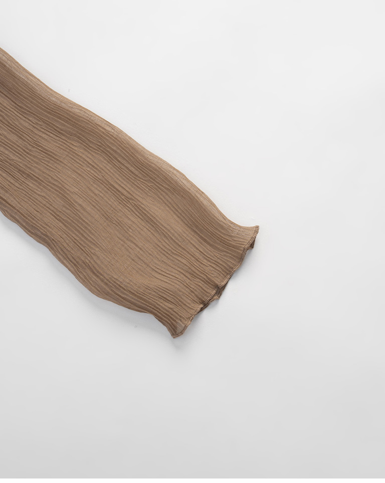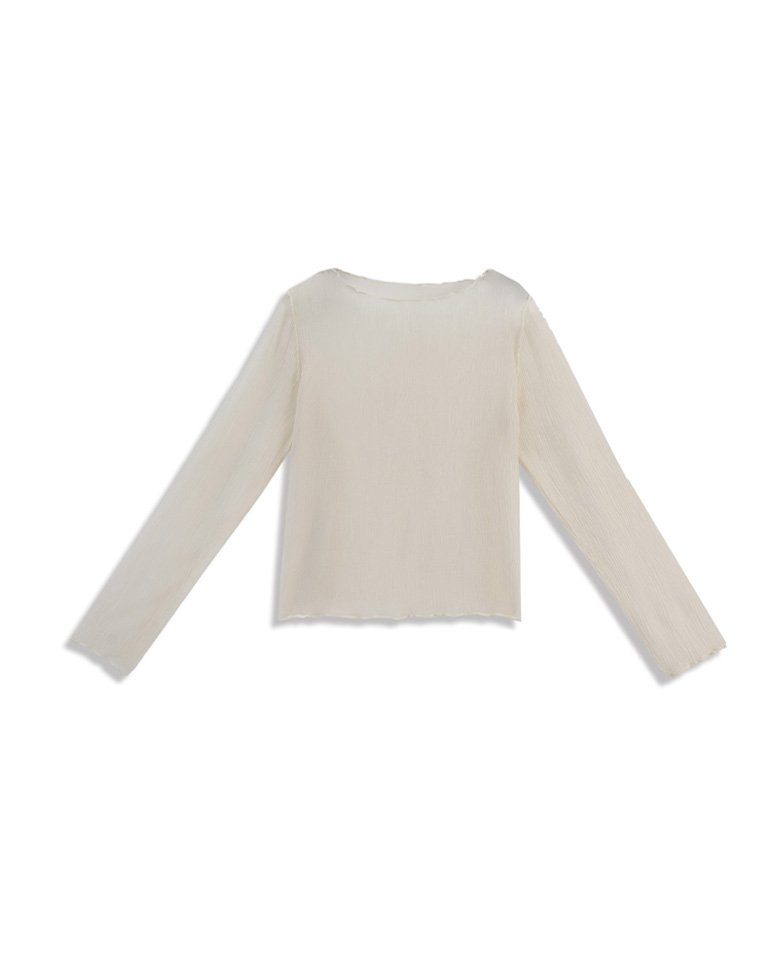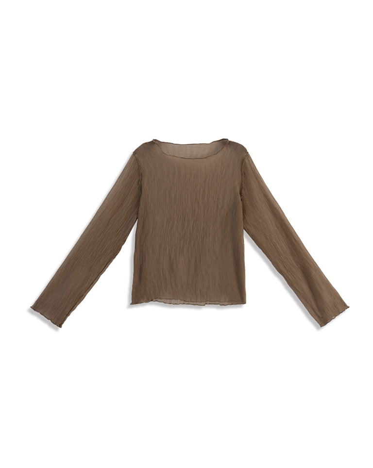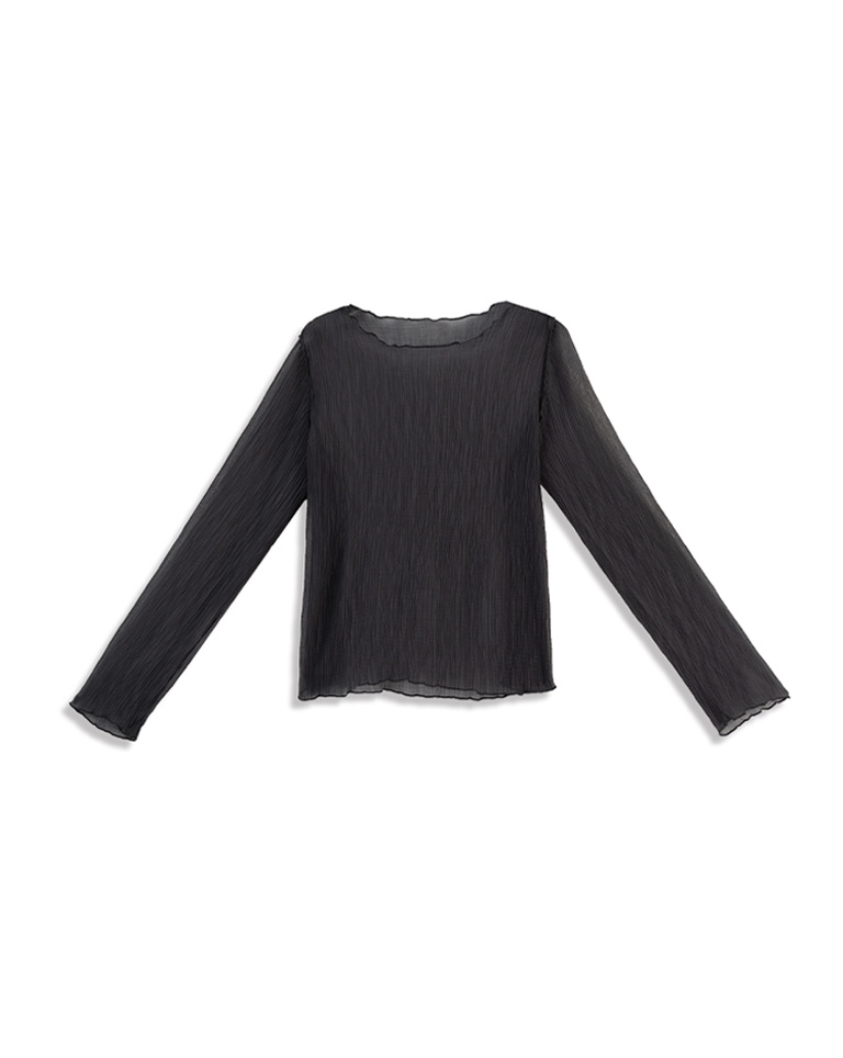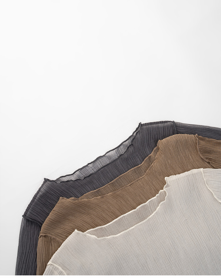 S~L身形實測!分尺寸皺皺木耳邊透膚高領長袖上衣