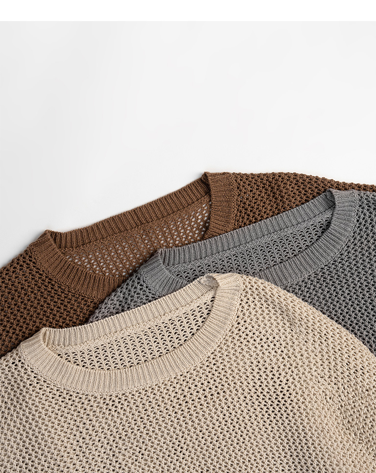 鏤空針織寬版短袖上衣 三色售