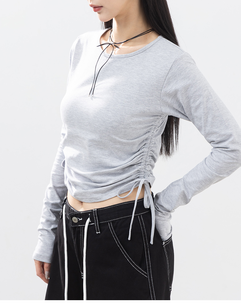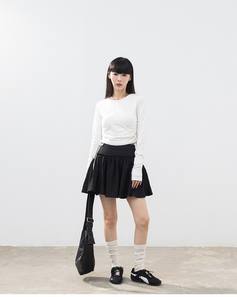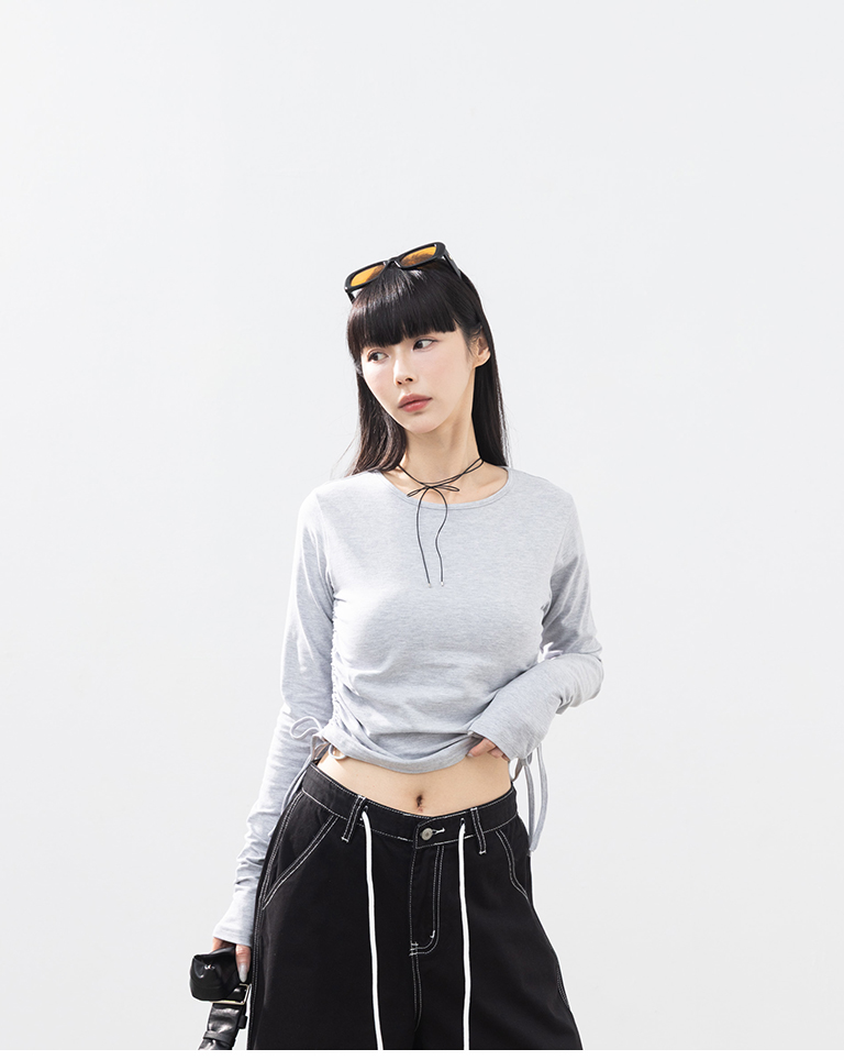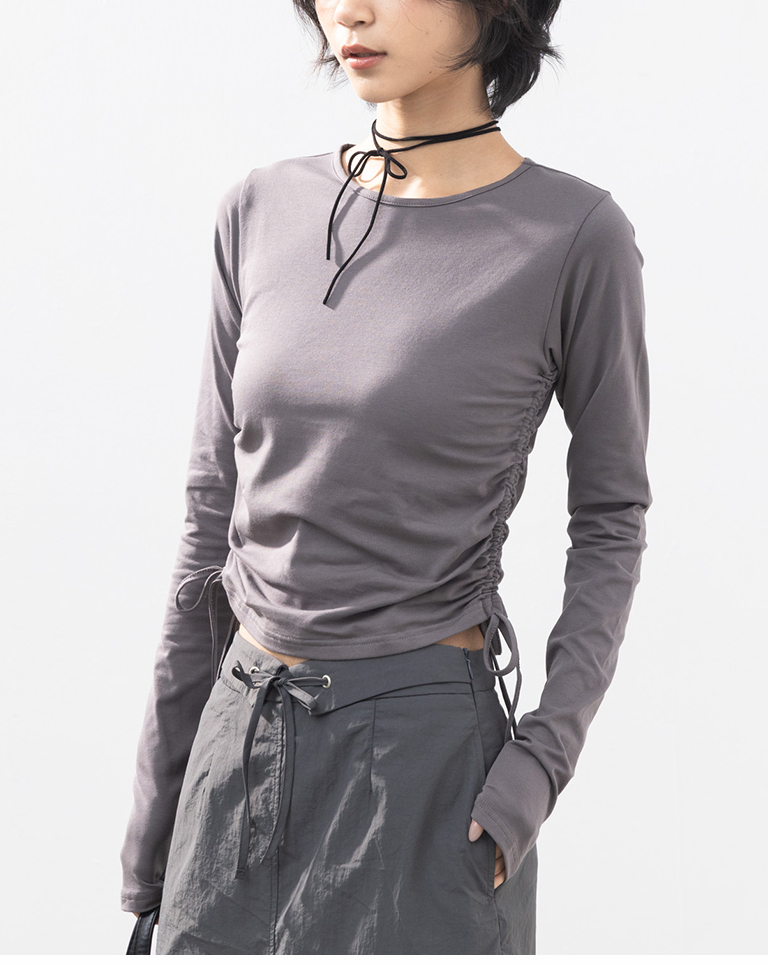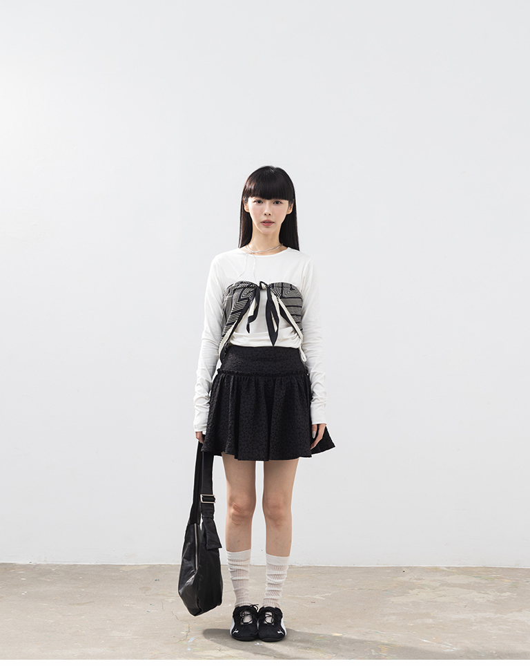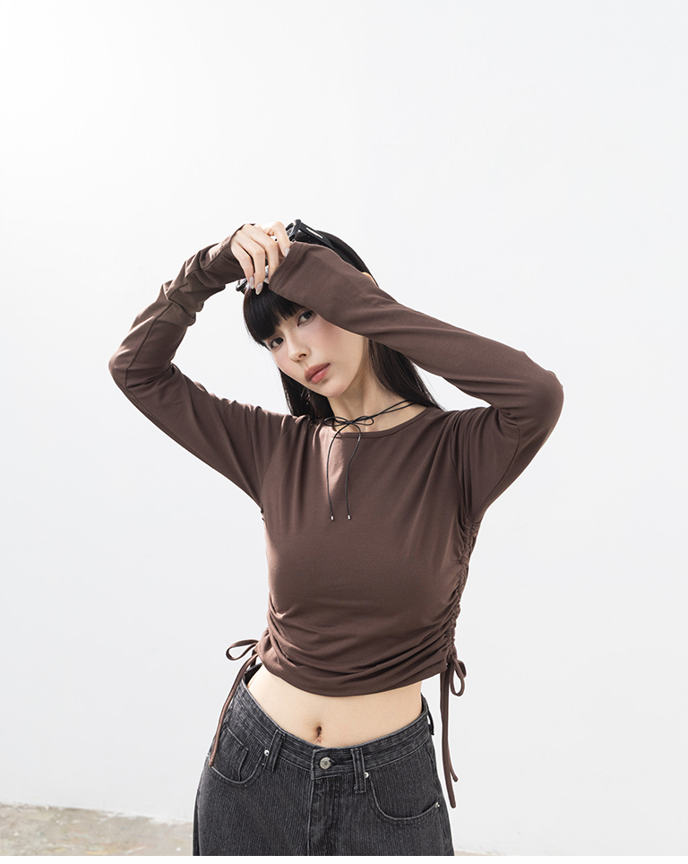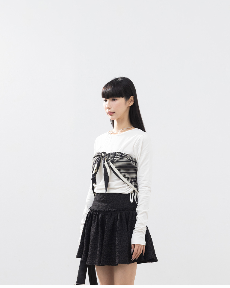 S~L身形實測!分尺寸皺皺木耳邊透膚高領長袖上衣