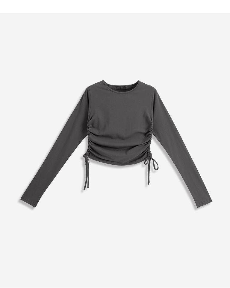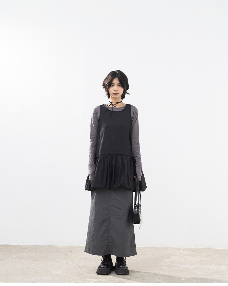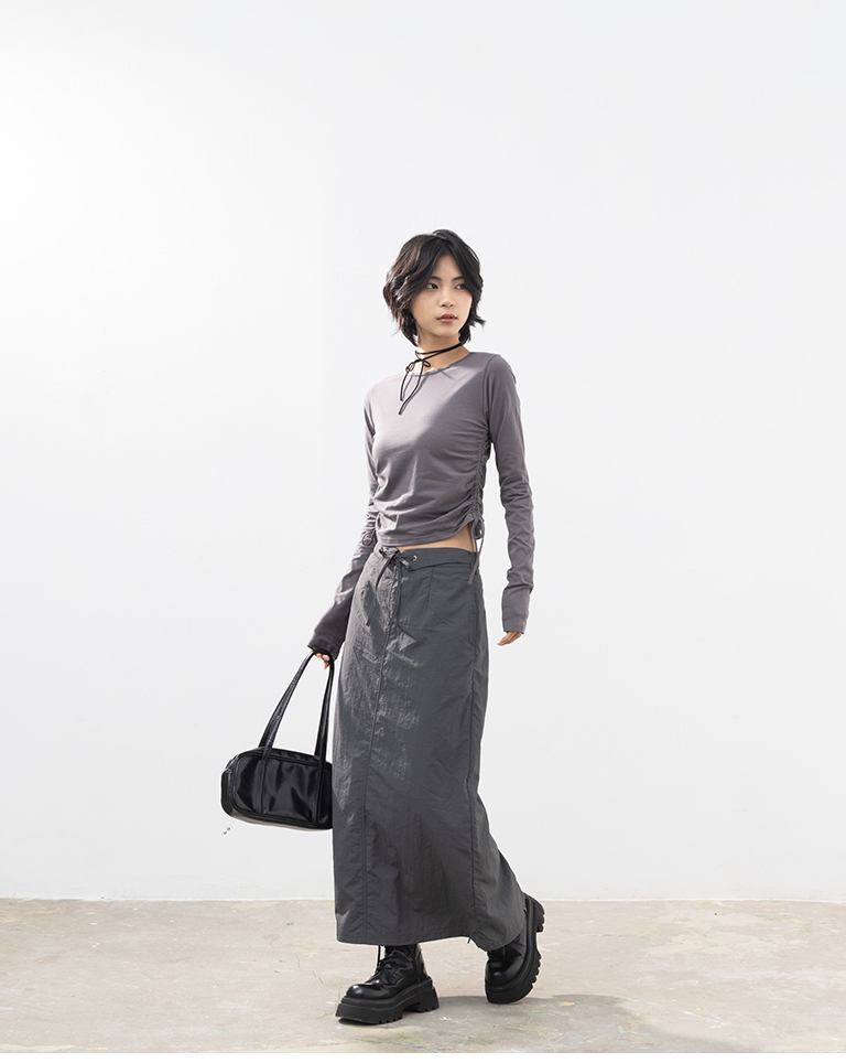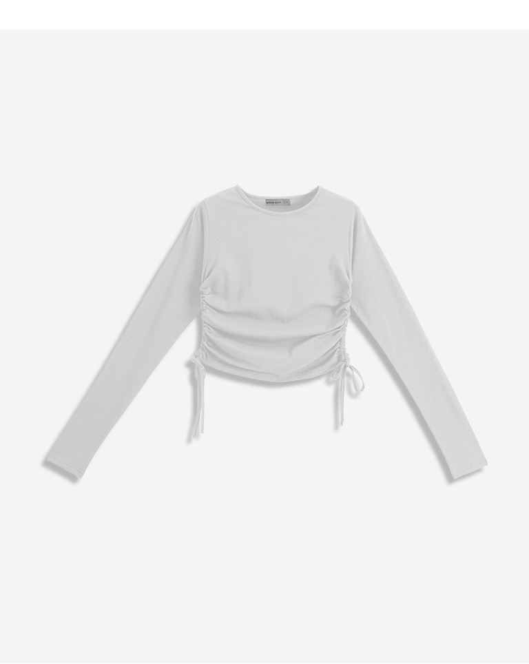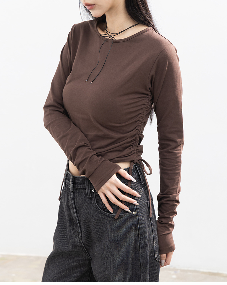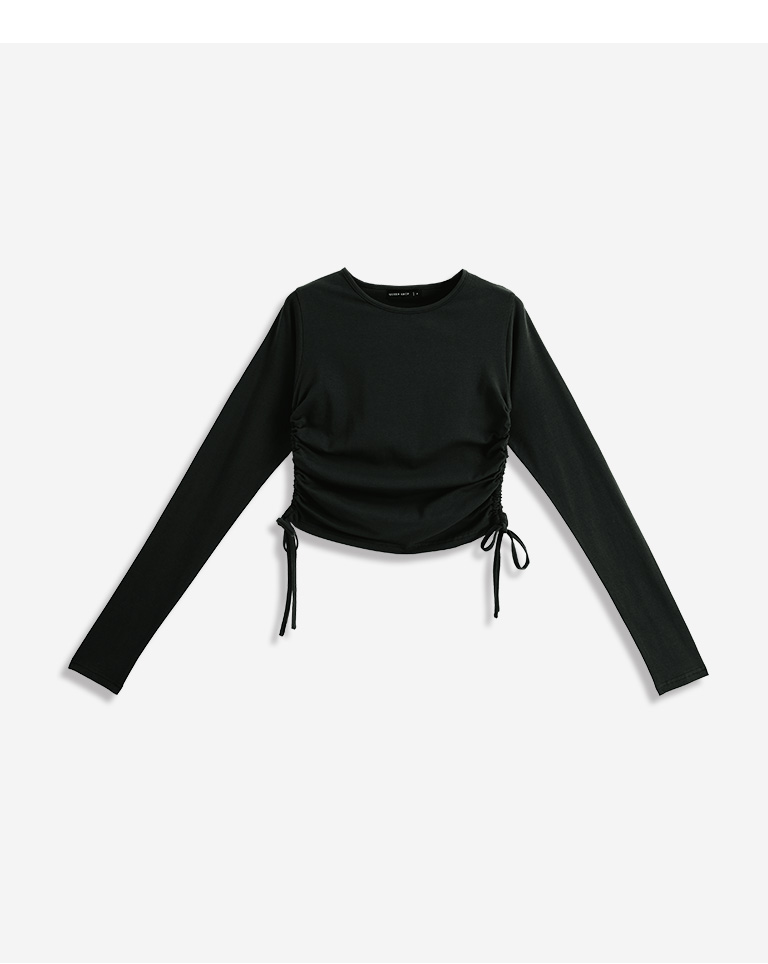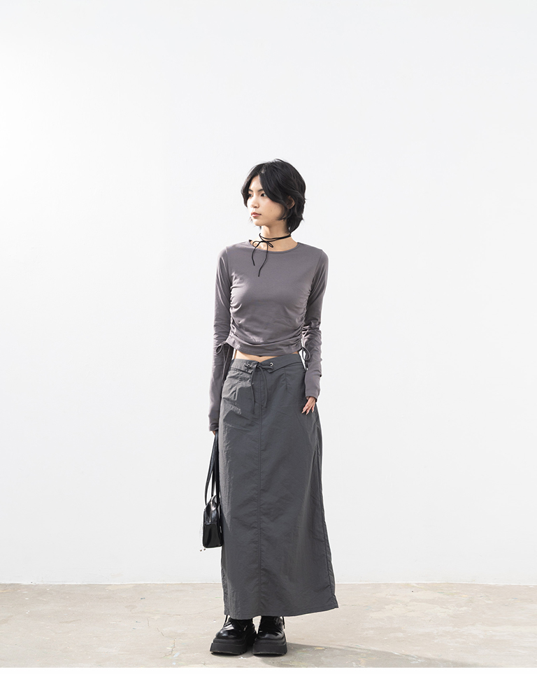 S~L身形實測!分尺寸皺皺木耳邊透膚高領長袖上衣