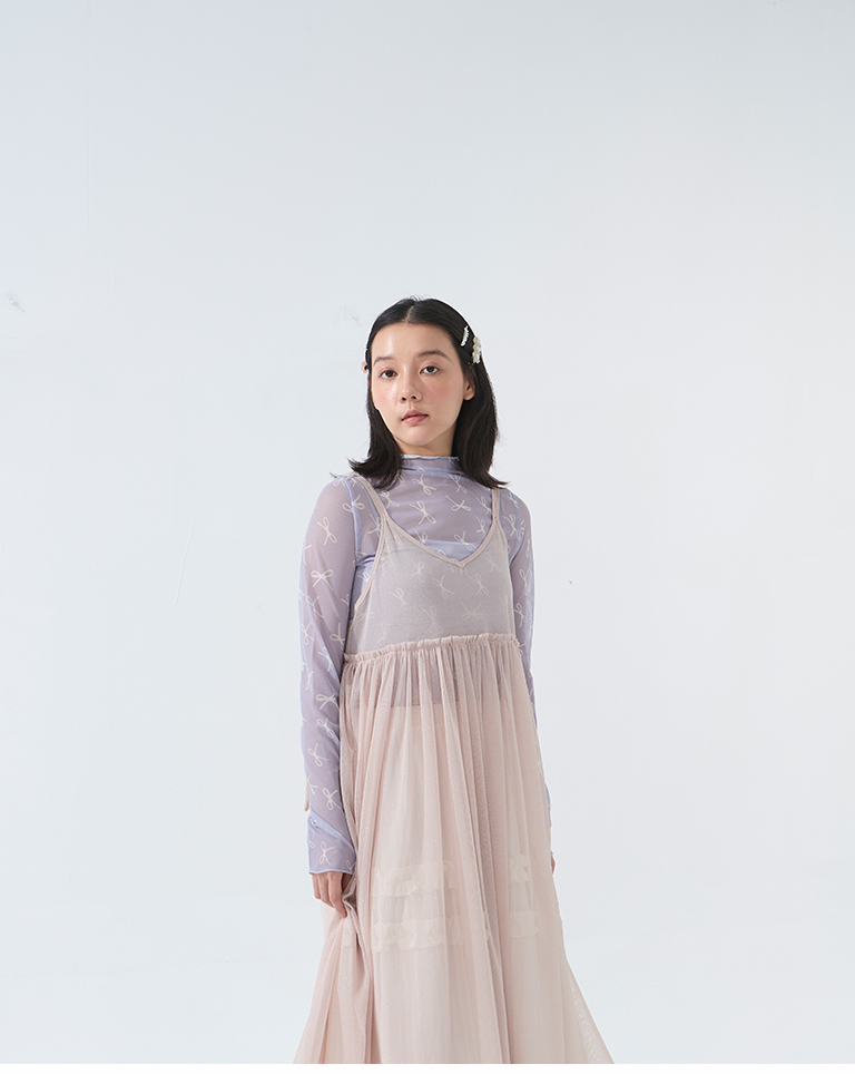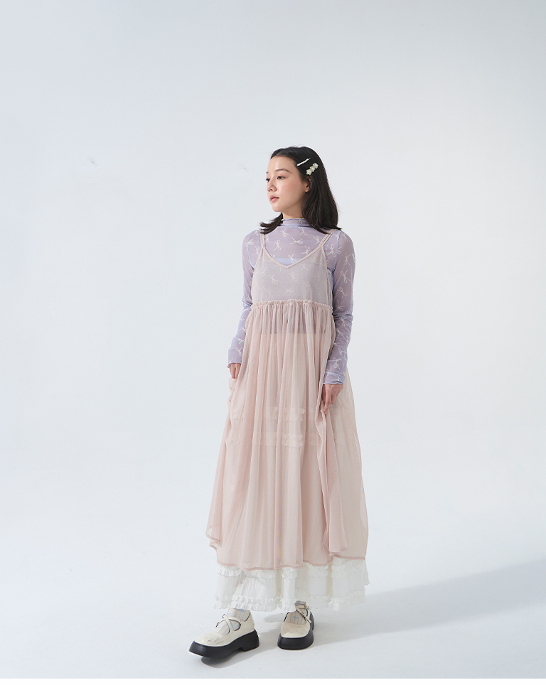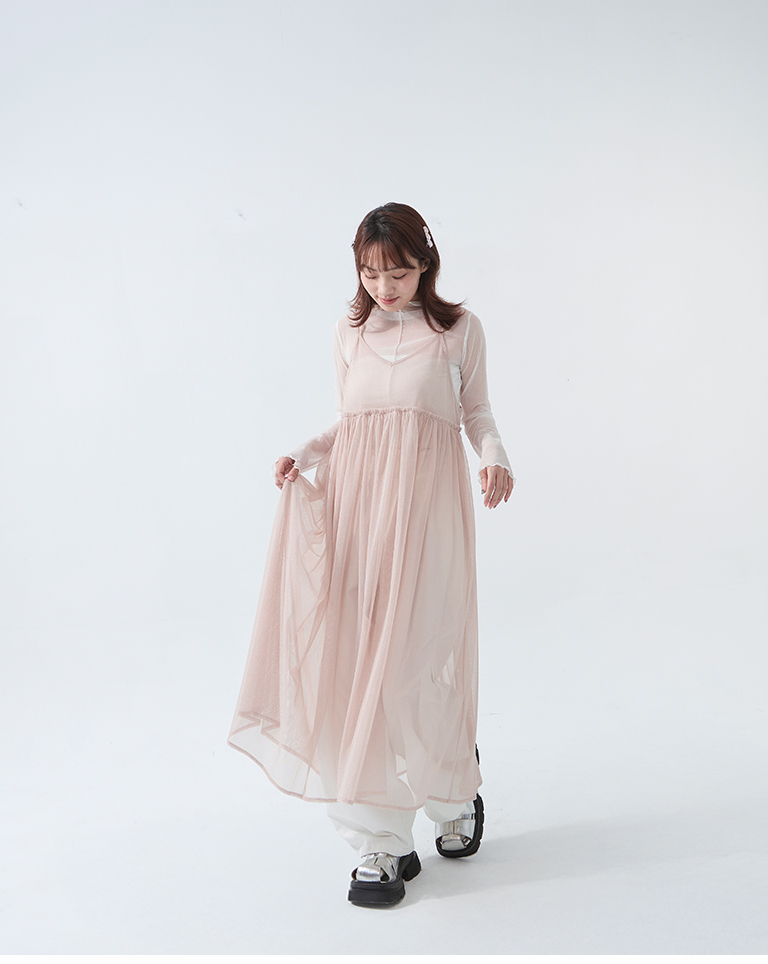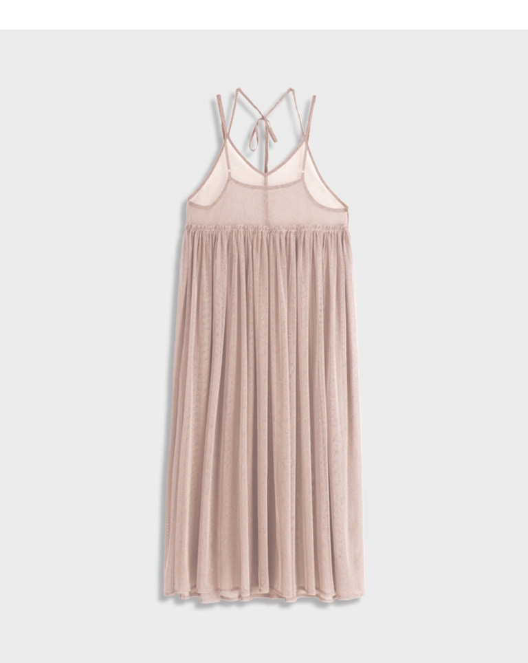 金蔥網紗設計細肩綁帶長罩衫-粉