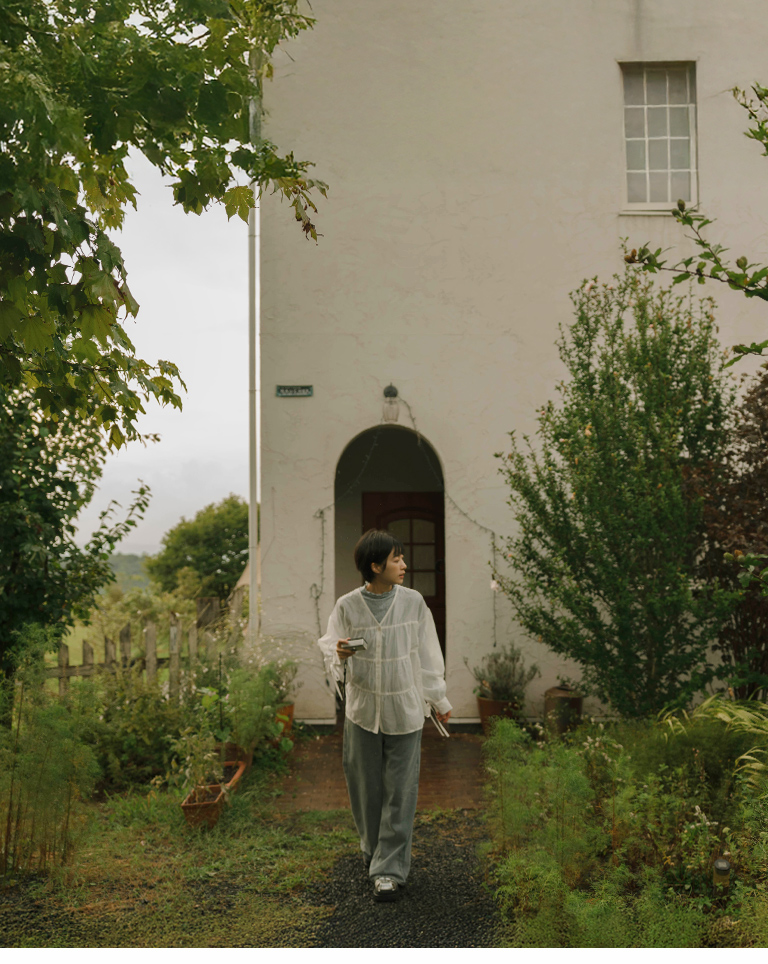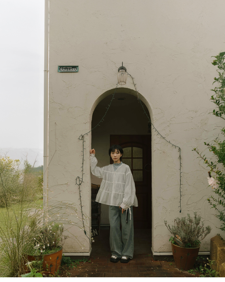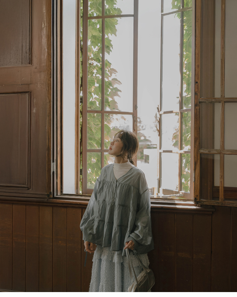 S~L身形實測!分尺寸皺皺木耳邊透膚高領長袖上衣