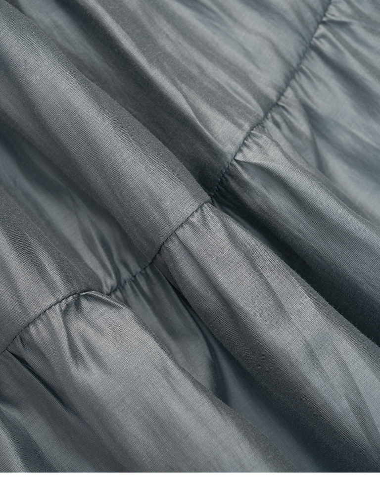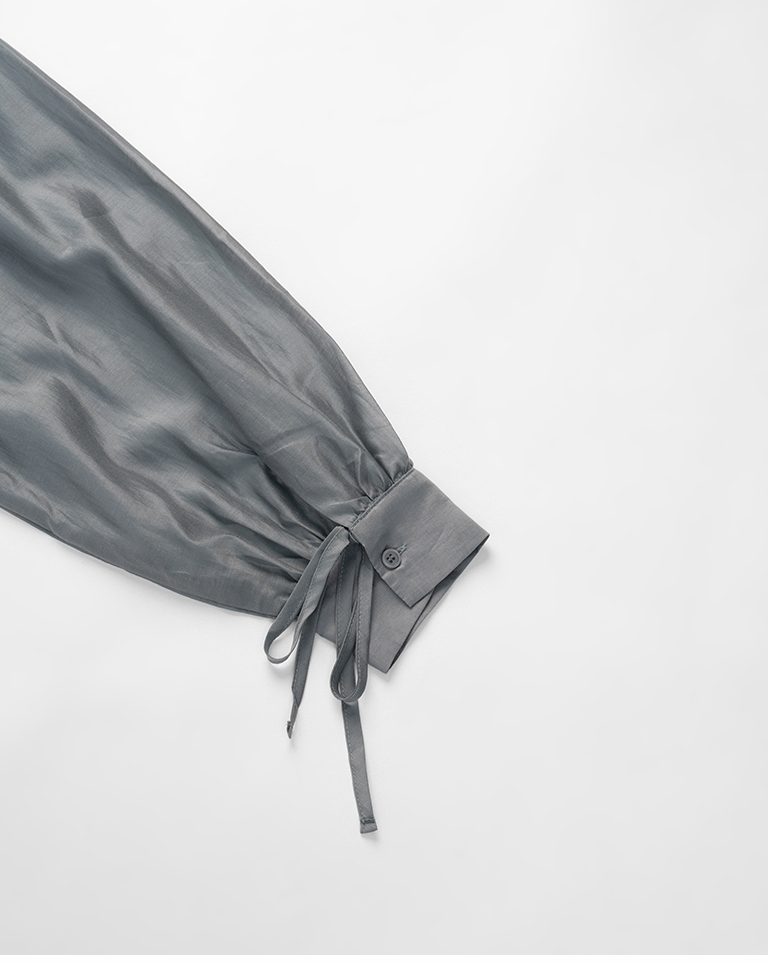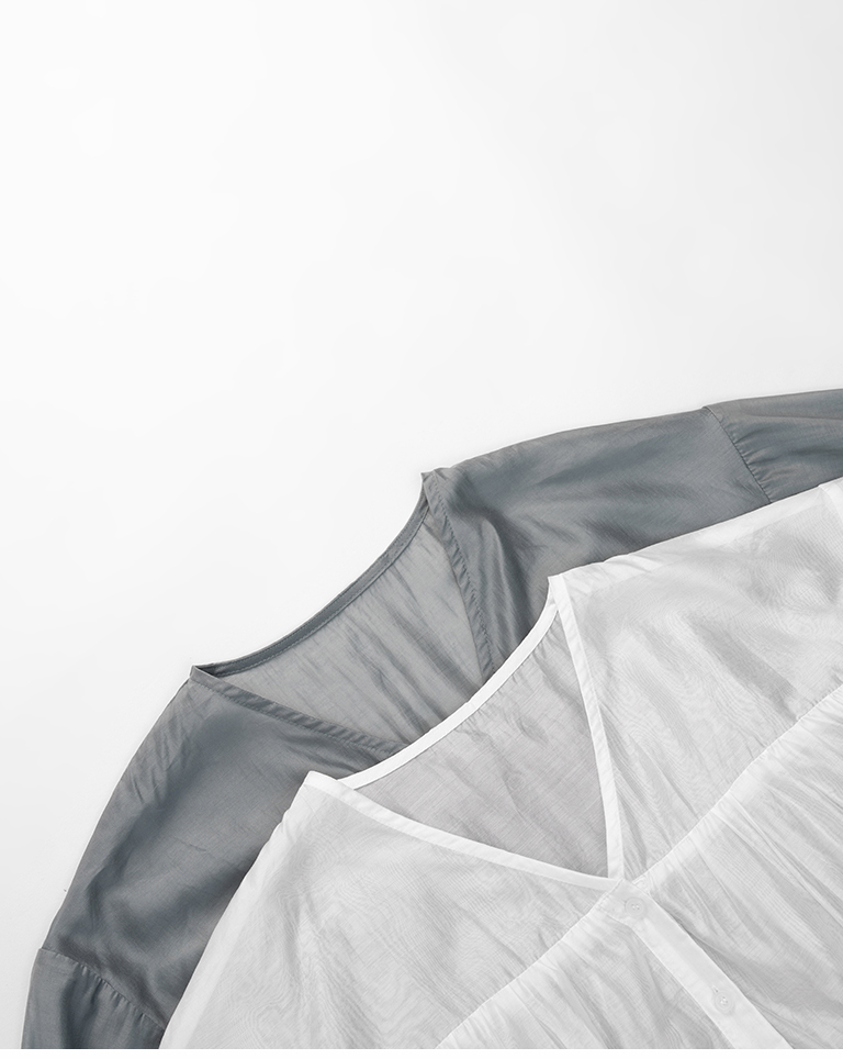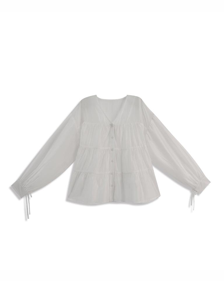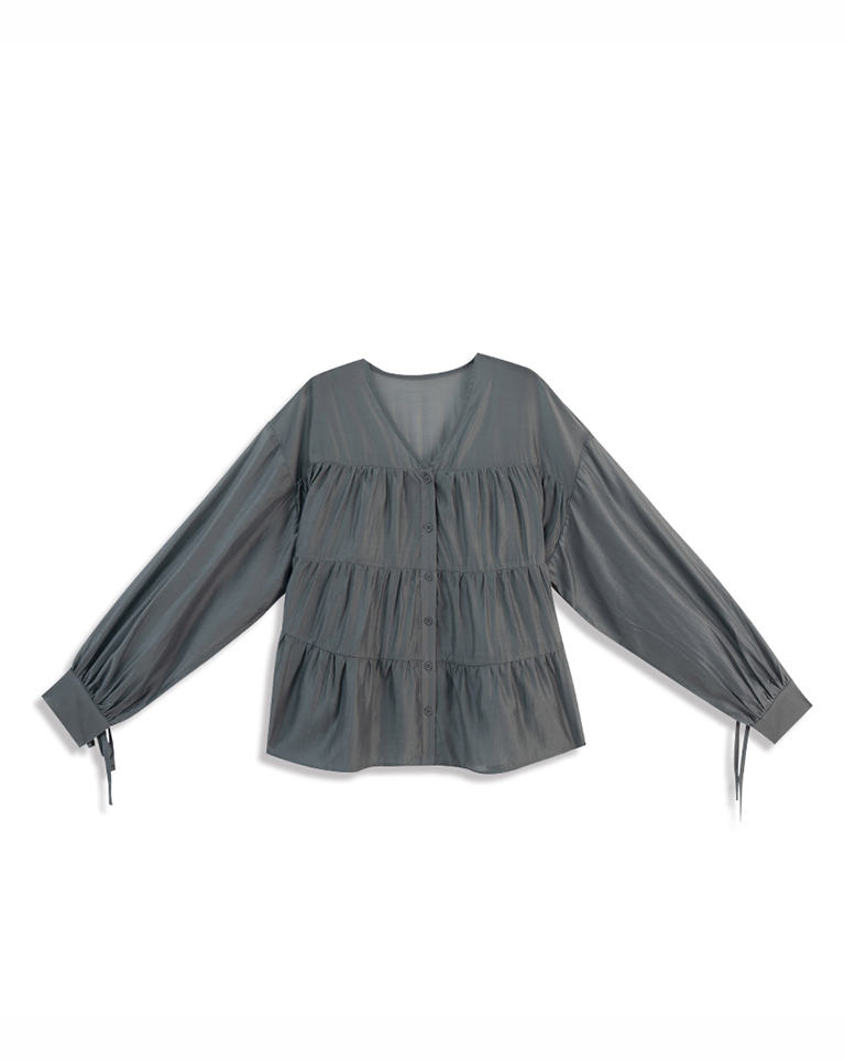 微光澤V領袖綁帶蛋糕感上衣 兩色售
