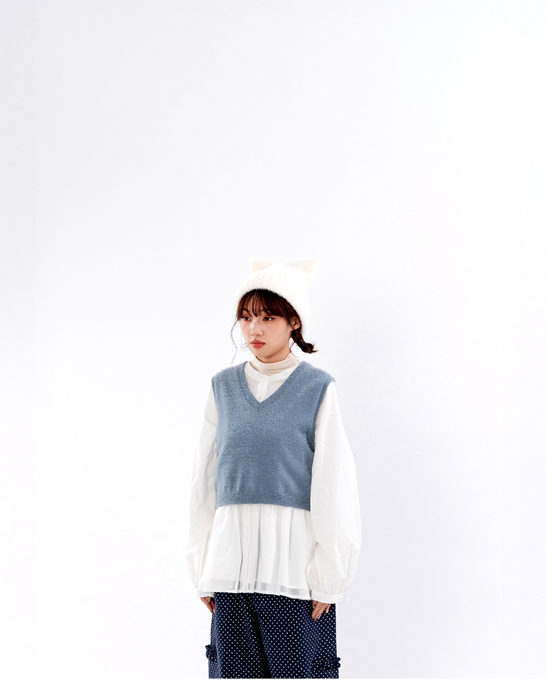 S~L身形實測!分尺寸皺皺木耳邊透膚高領長袖上衣