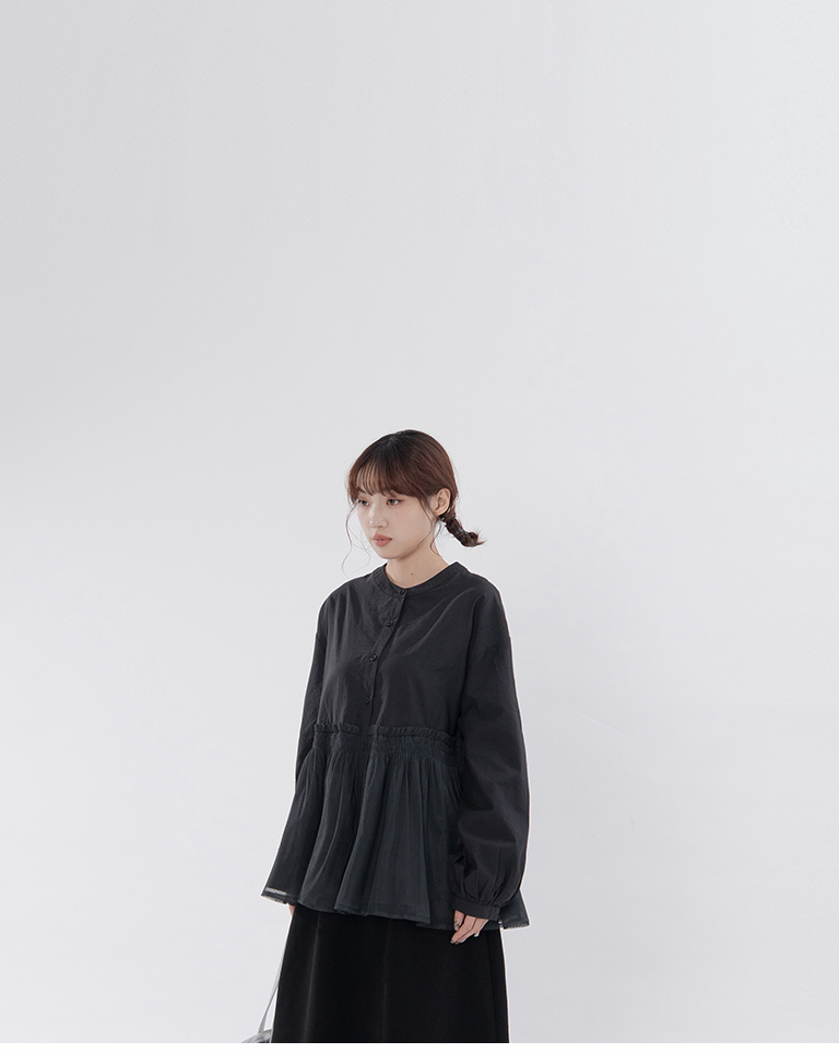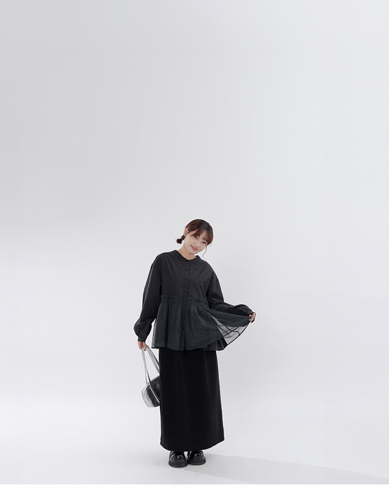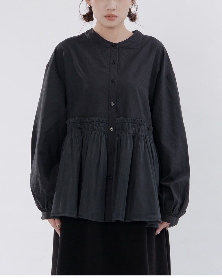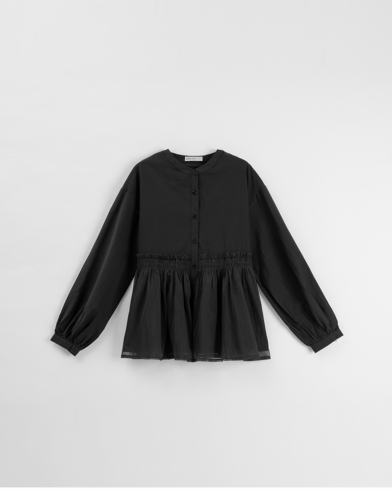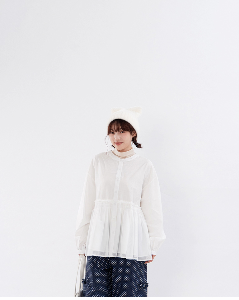 荷葉透紗剪接設計中山領襯衫 兩色售