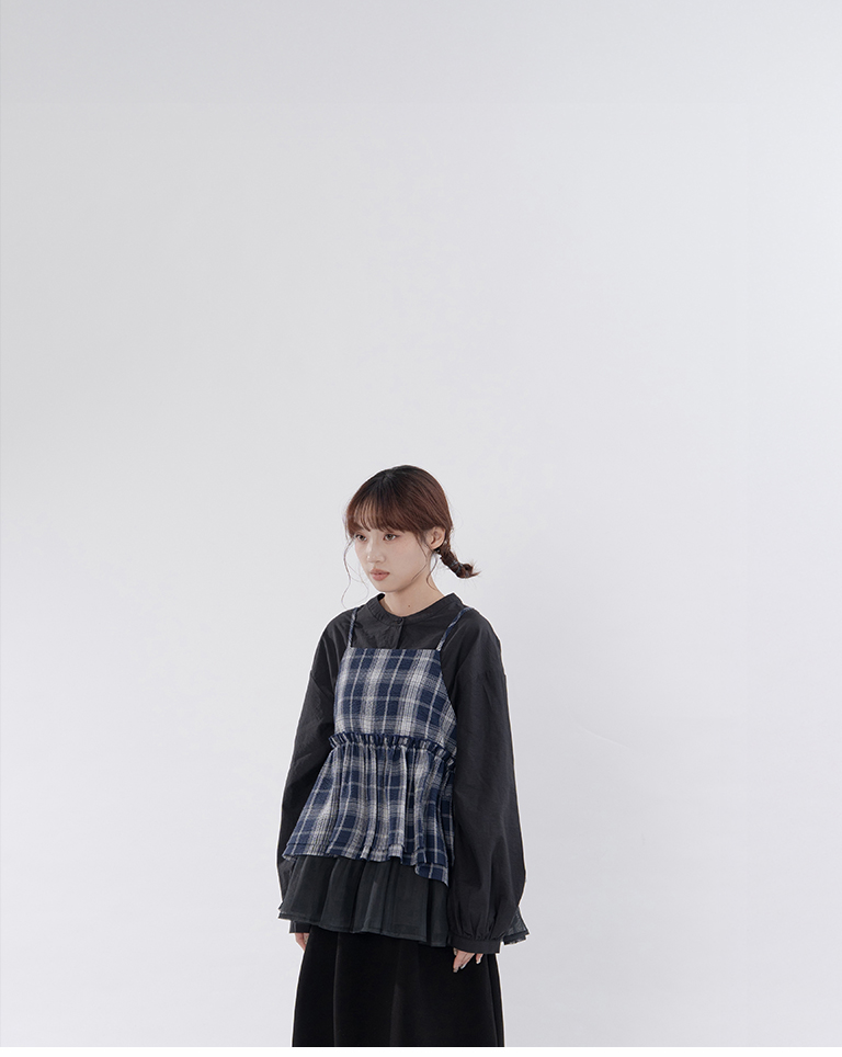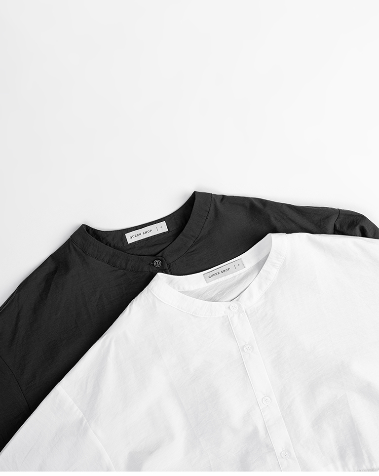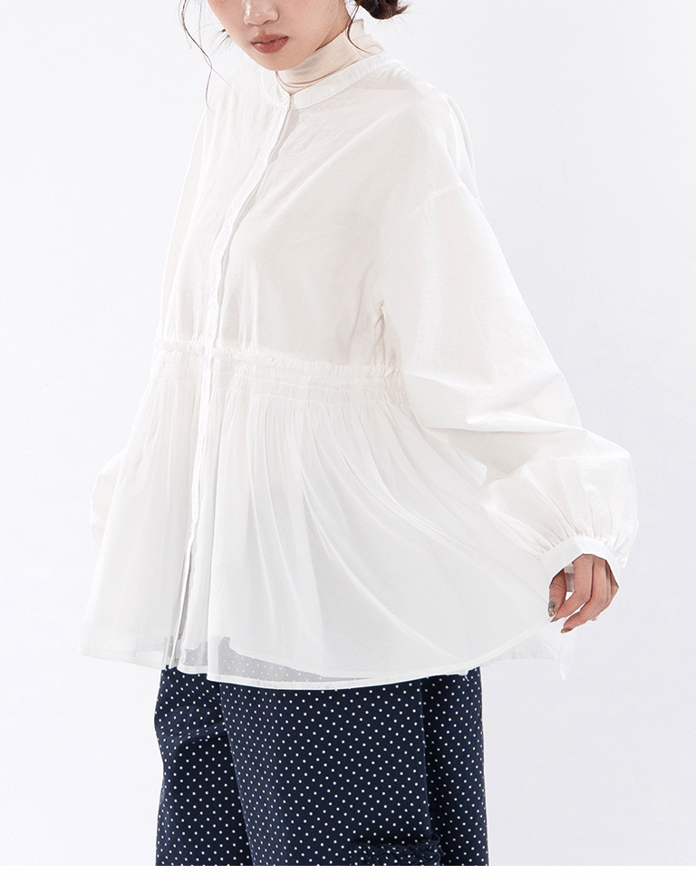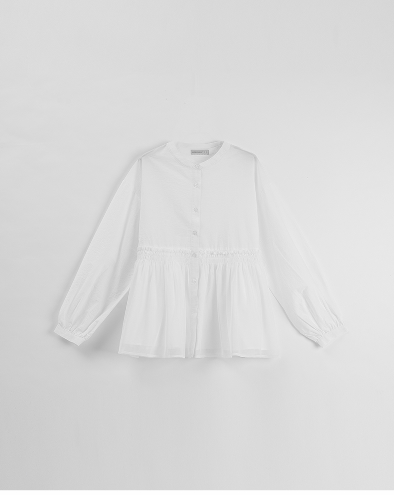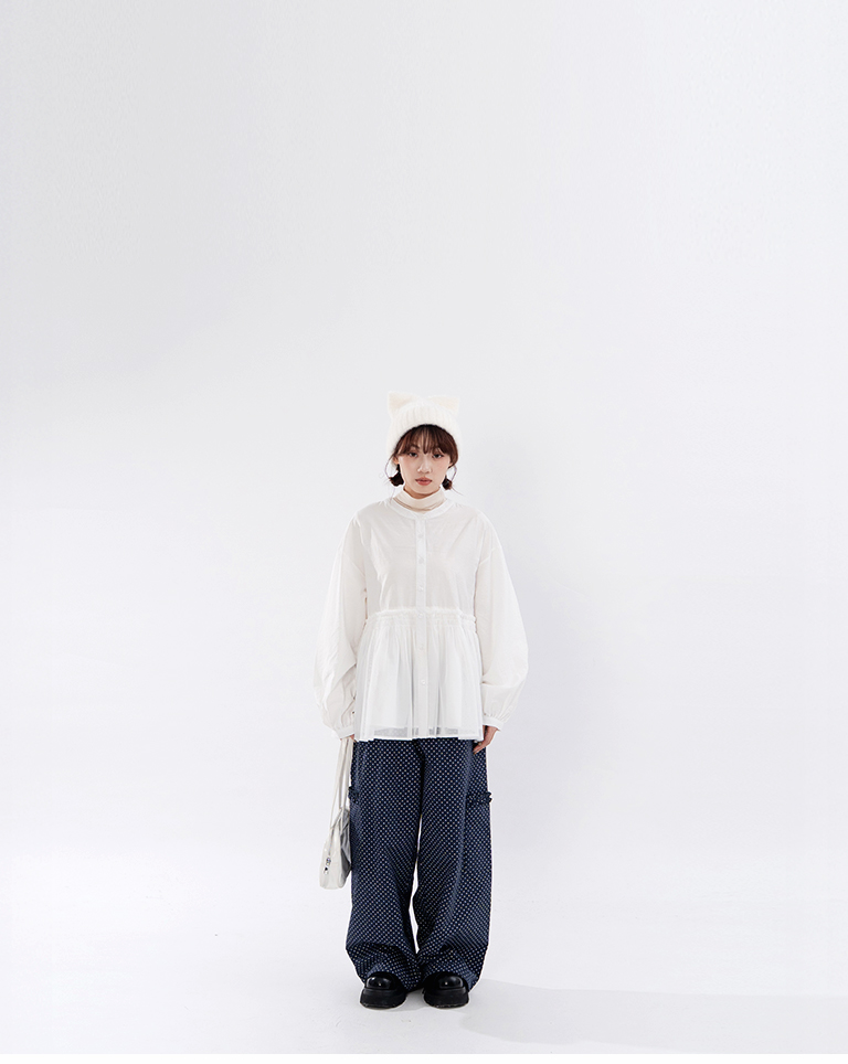 荷葉透紗剪接設計中山領襯衫 兩色售