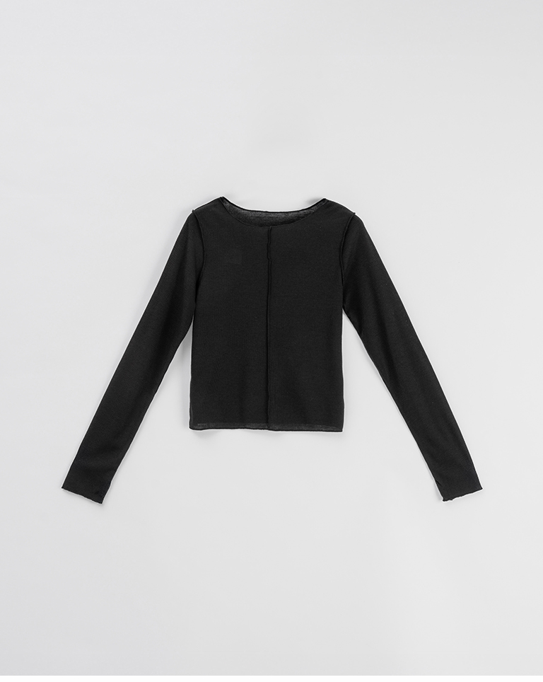 S~L身形實測!分尺寸皺皺木耳邊透膚高領長袖上衣