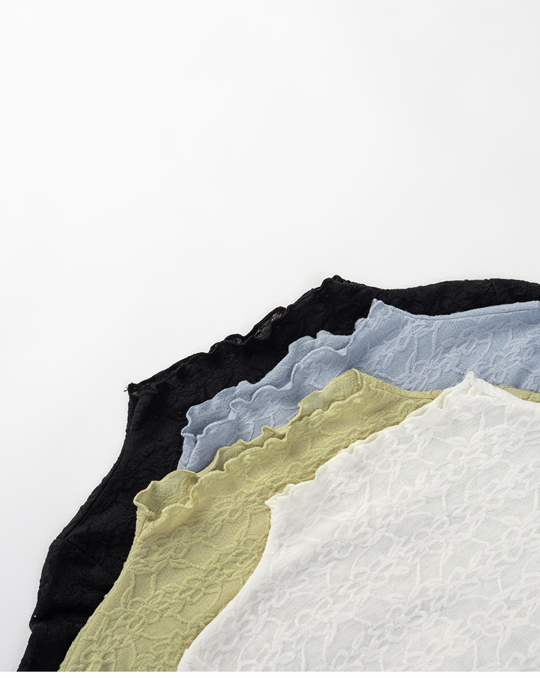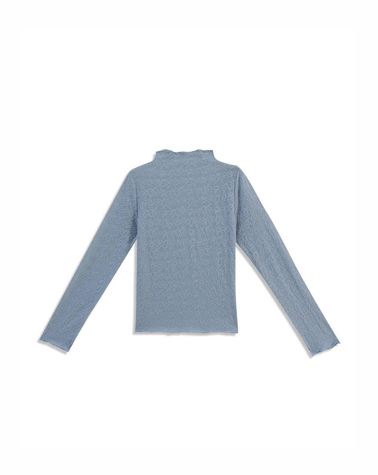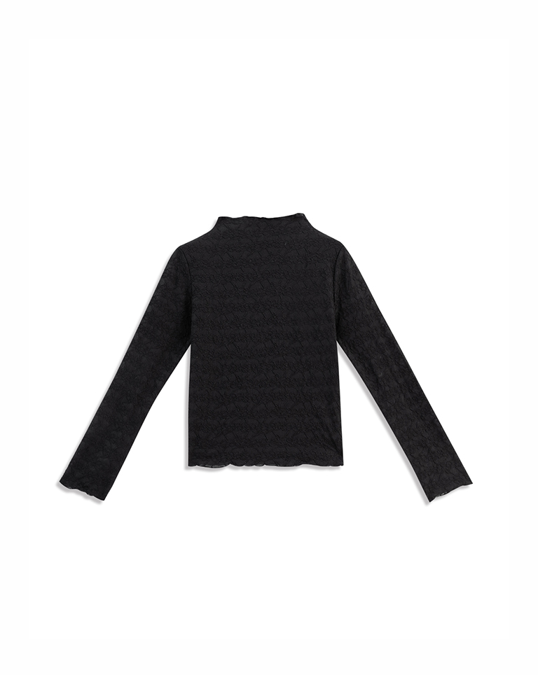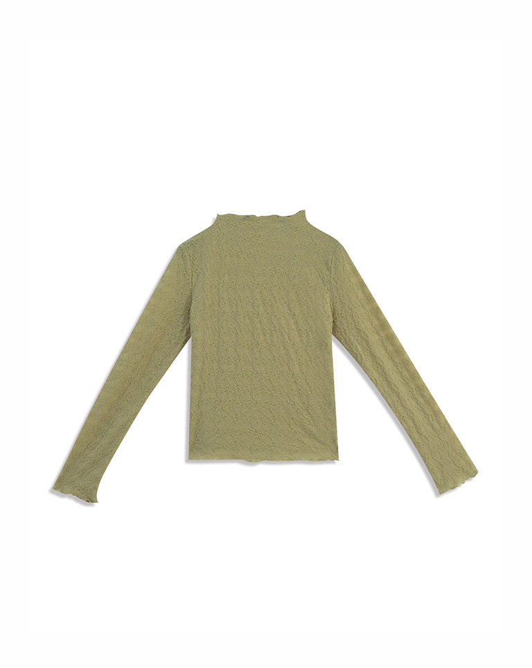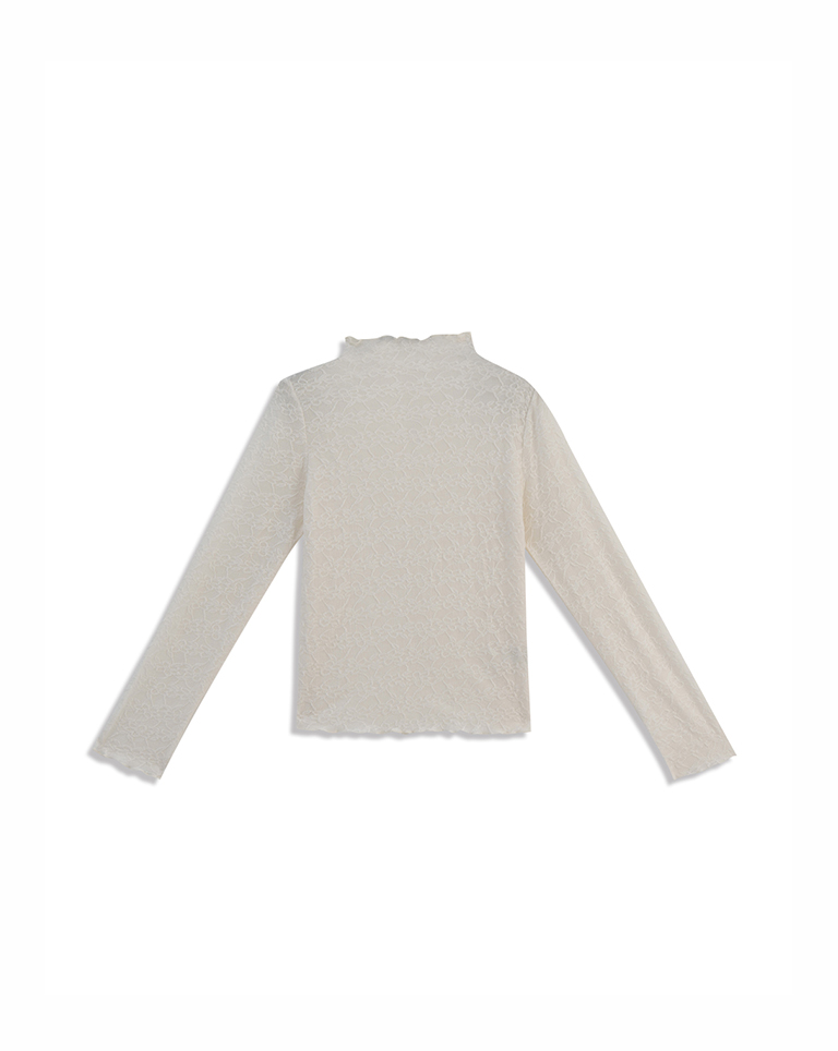 S~L身形實測!分尺寸皺皺木耳邊透膚高領長袖上衣