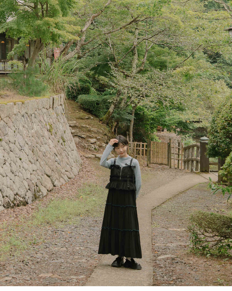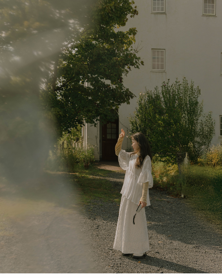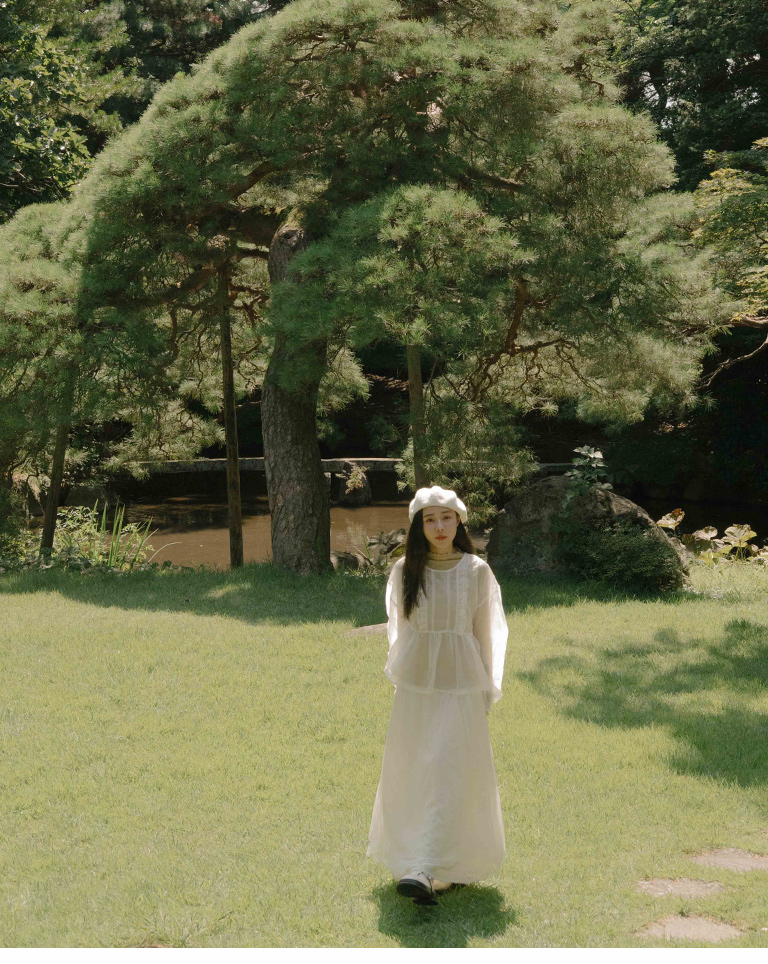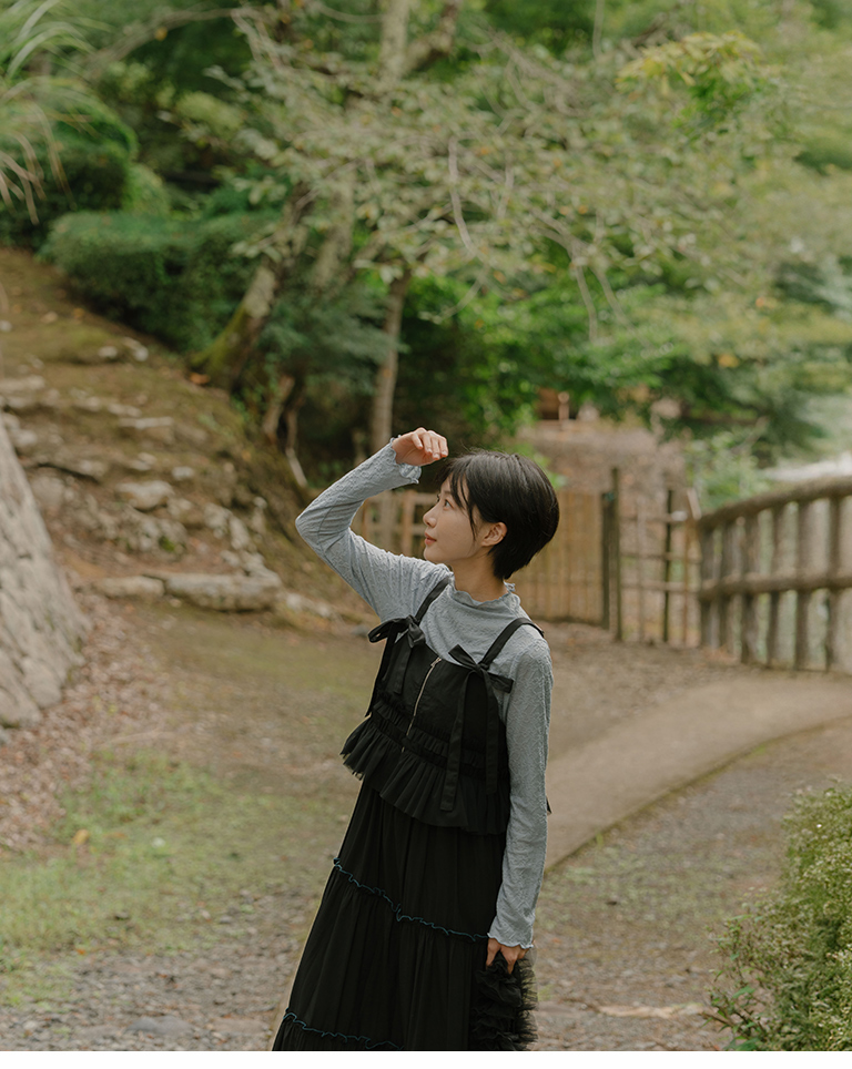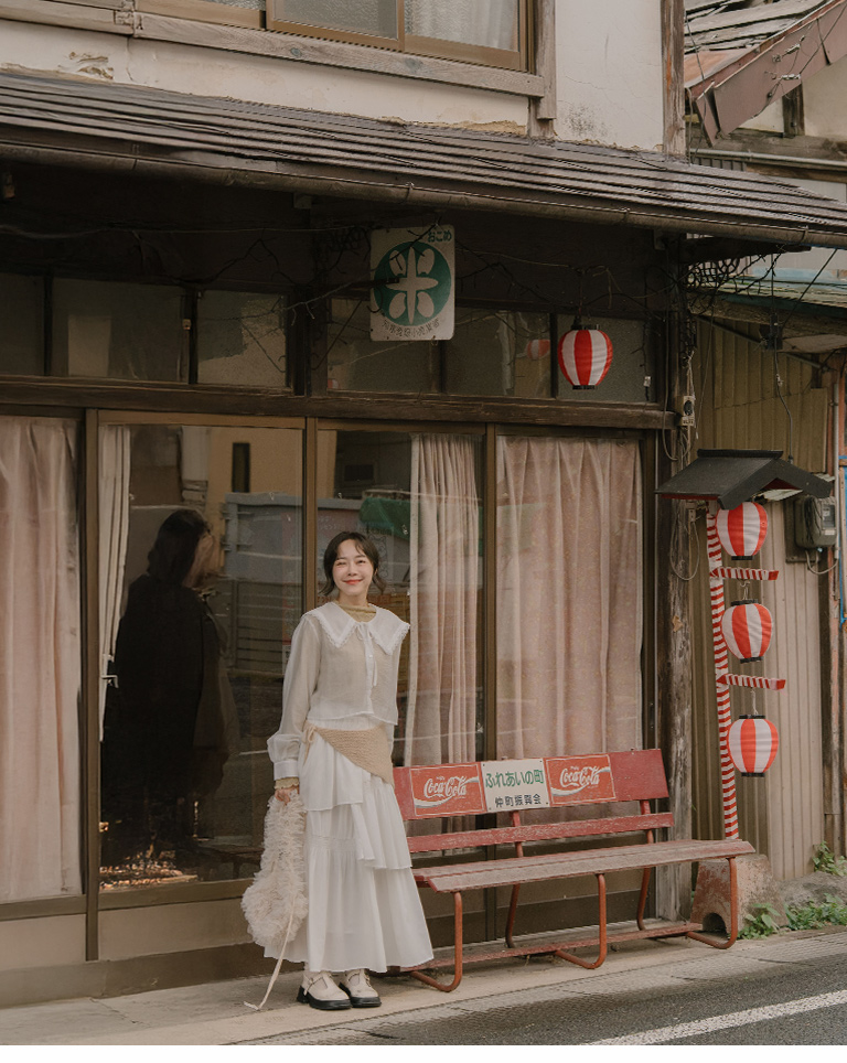 S~L身形實測!分尺寸皺皺木耳邊透膚高領長袖上衣