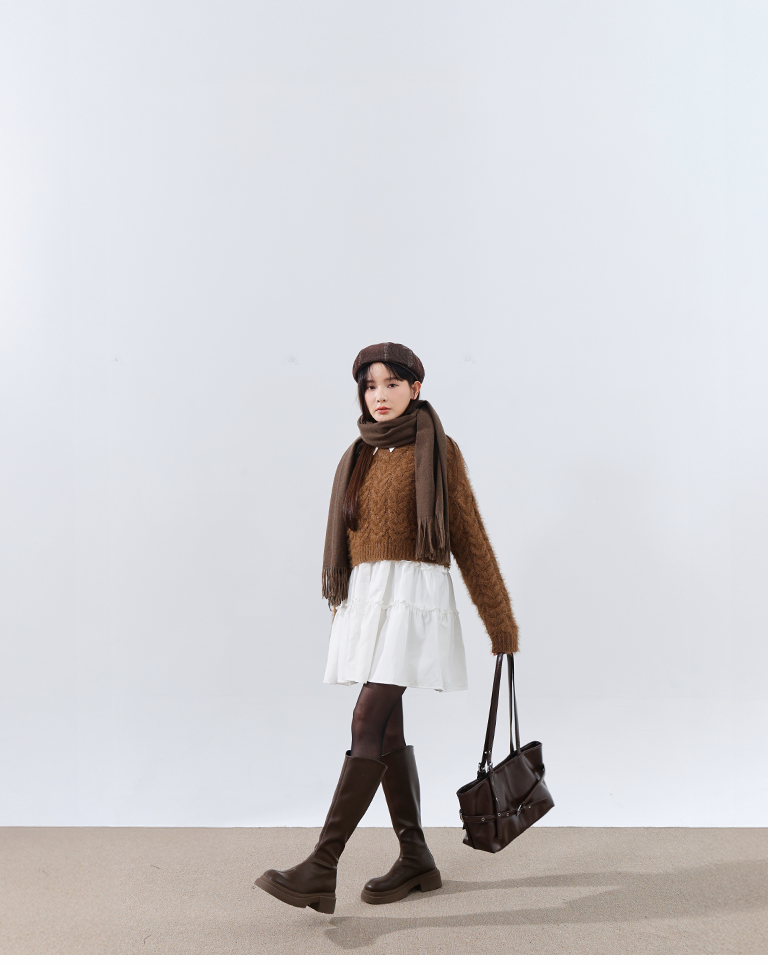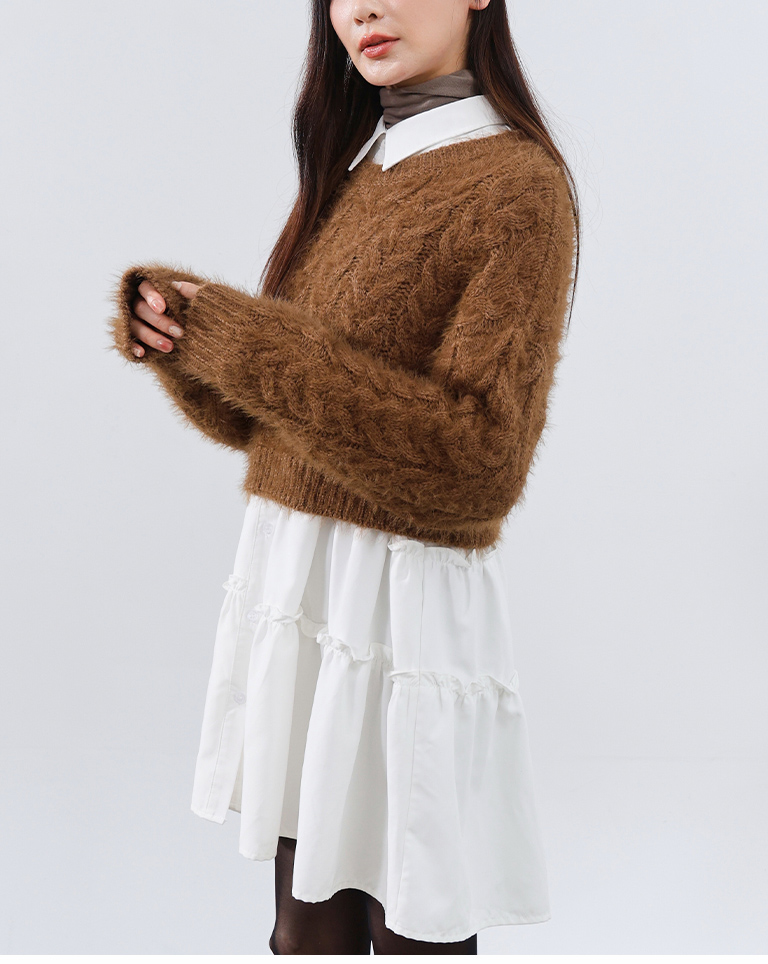 您所詢問的咖啡色麻花毛絨織紋短版針織毛衣搭配商品,這邊提供【01087165 -不對稱荷葉剪接襯衫短洋裝 兩色售】給您參考看看喔,謝謝您。
