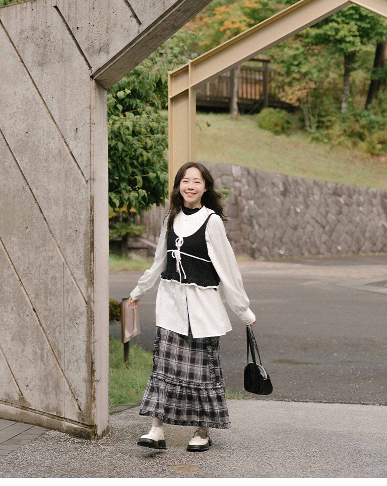 問題 1:請問搭配的格紋長裙有賣嗎 想問貨號~