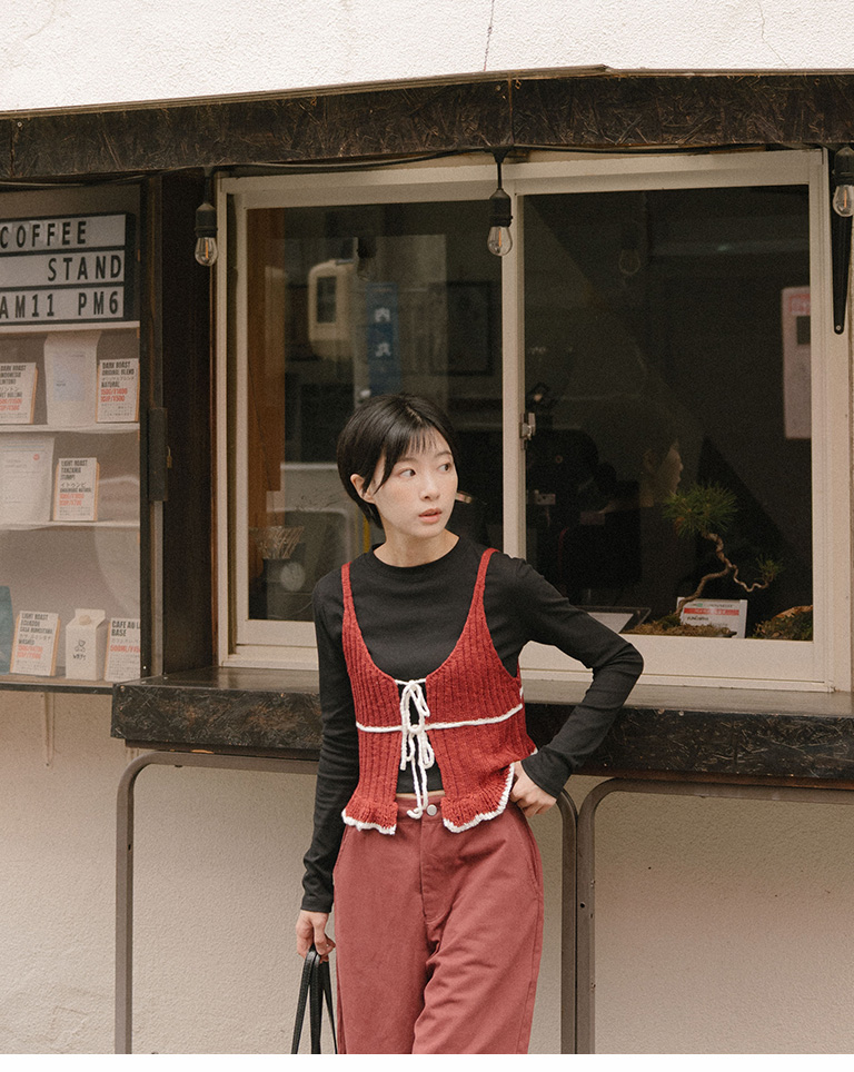S~L身形實測!分尺寸皺皺木耳邊透膚高領長袖上衣
