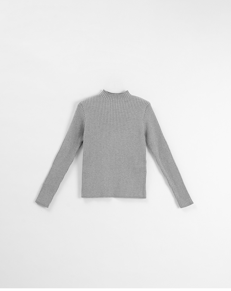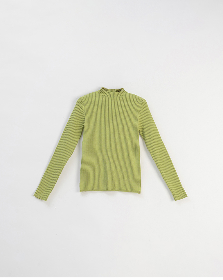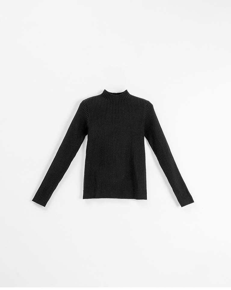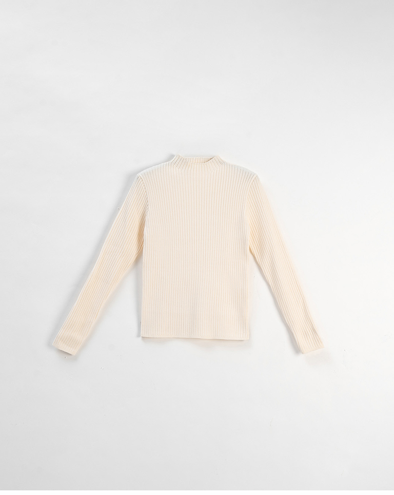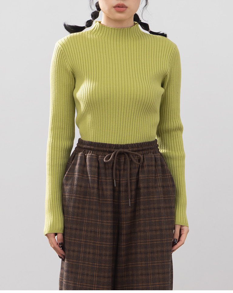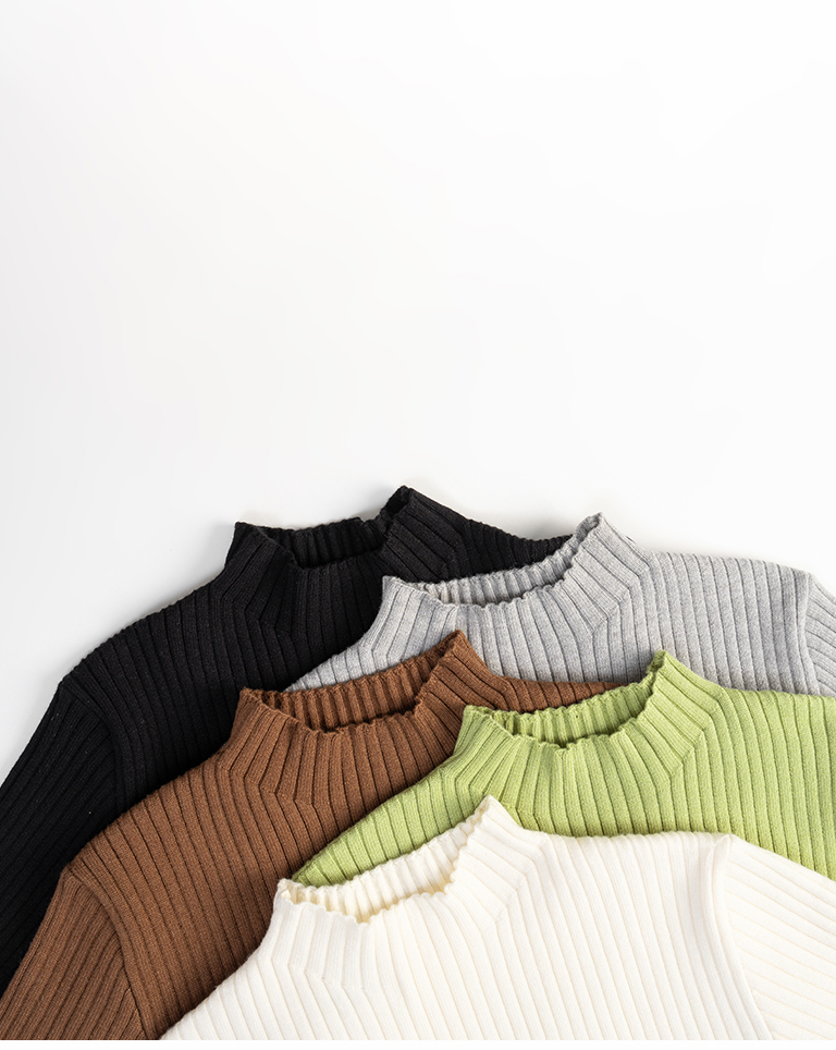 基礎素面坑條針織高領上衣