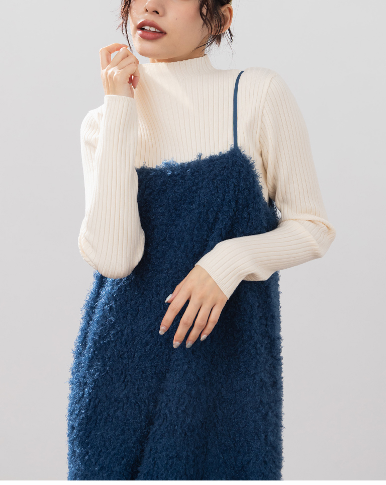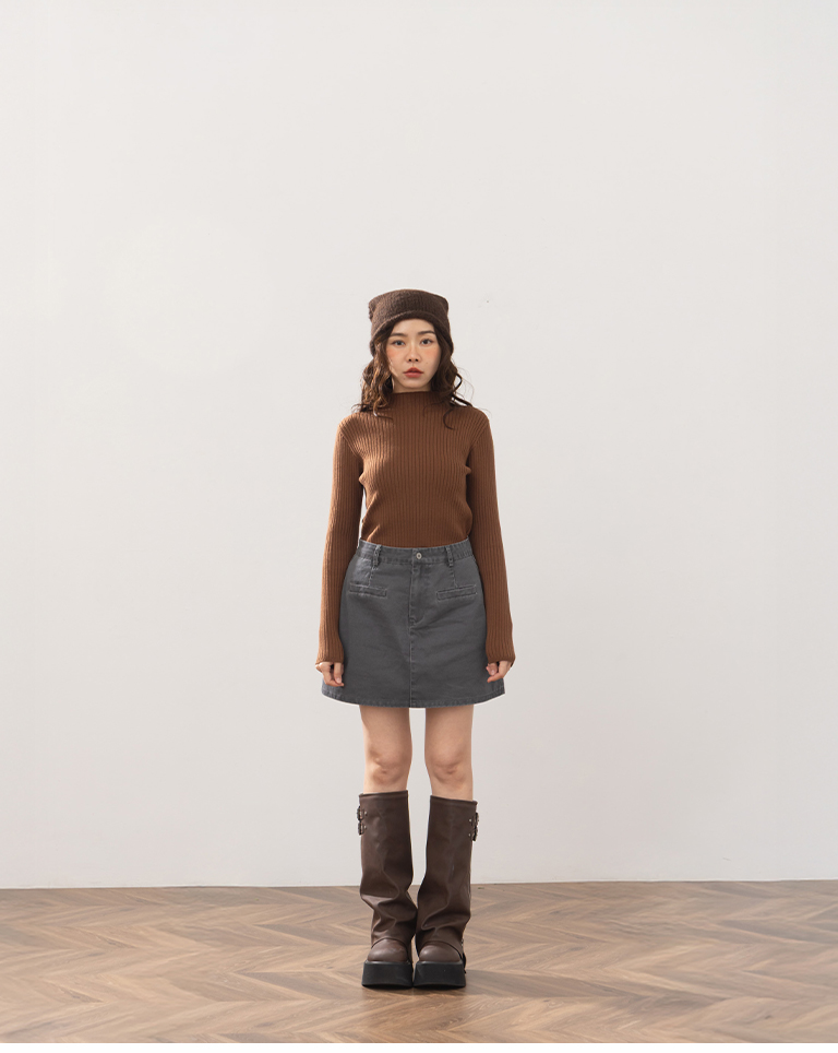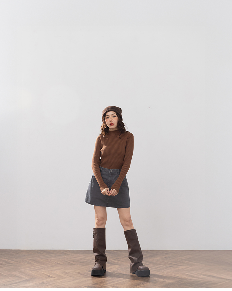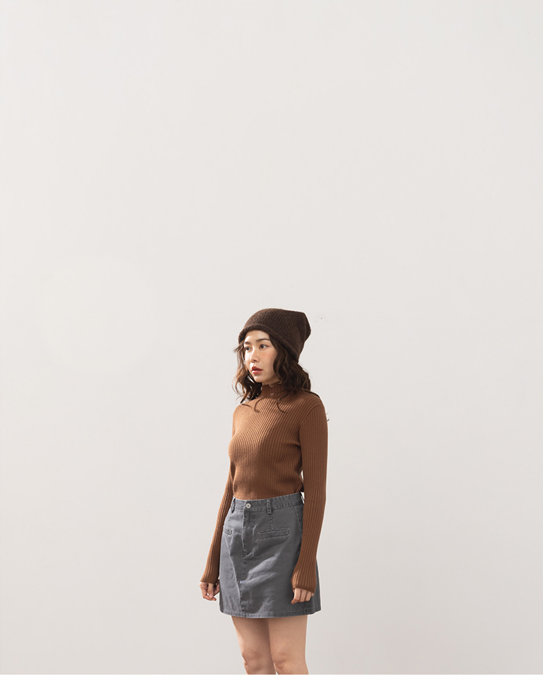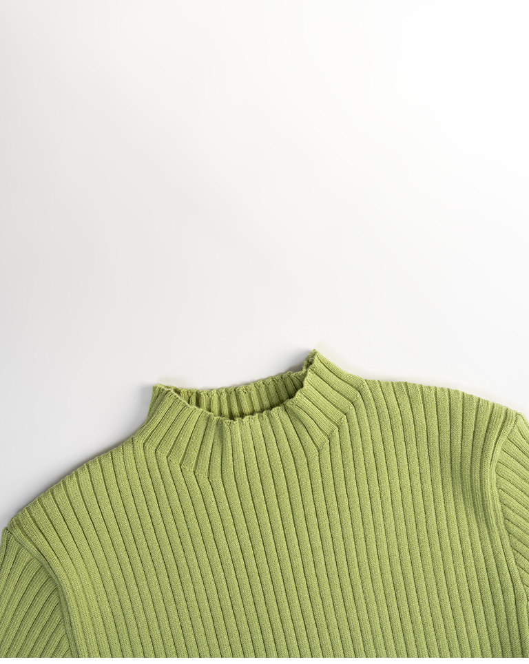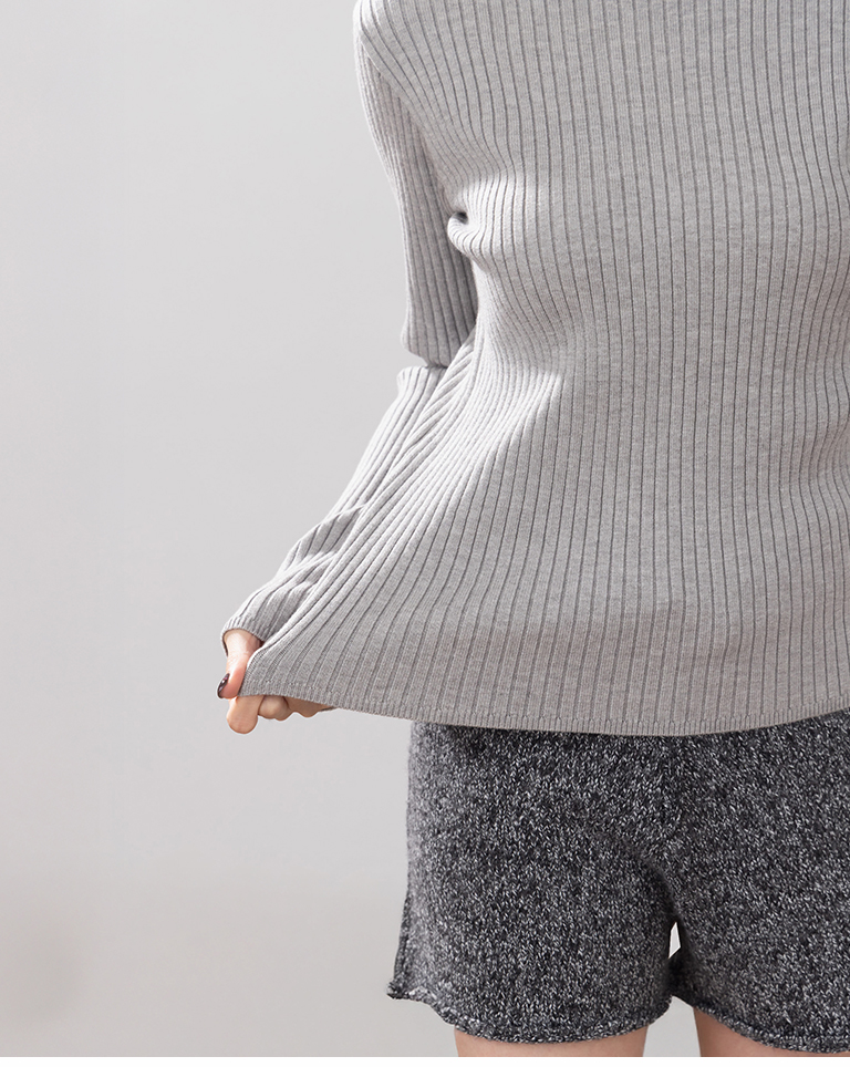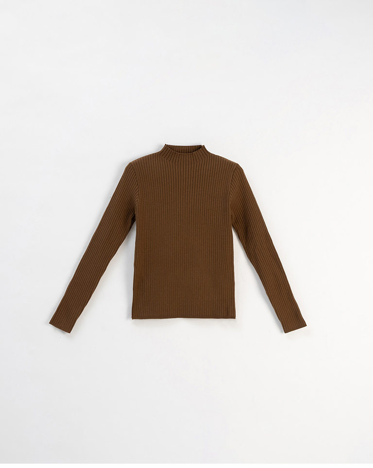 基礎素面坑條針織高領上衣