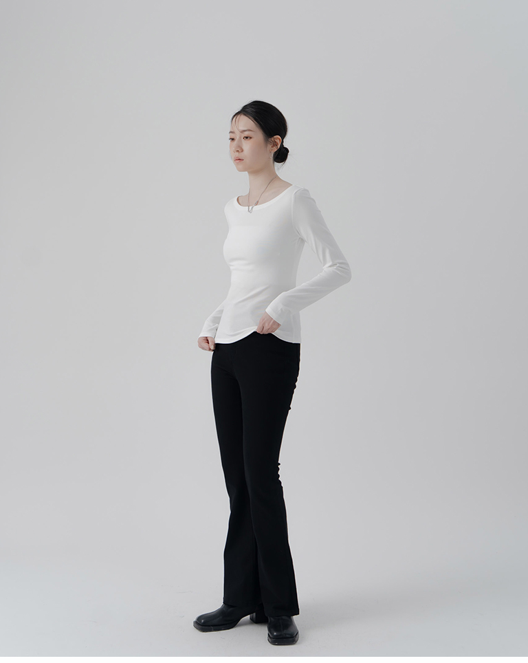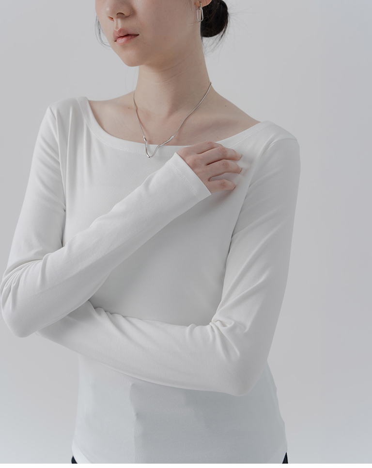 素色平領彈性設計長袖上衣