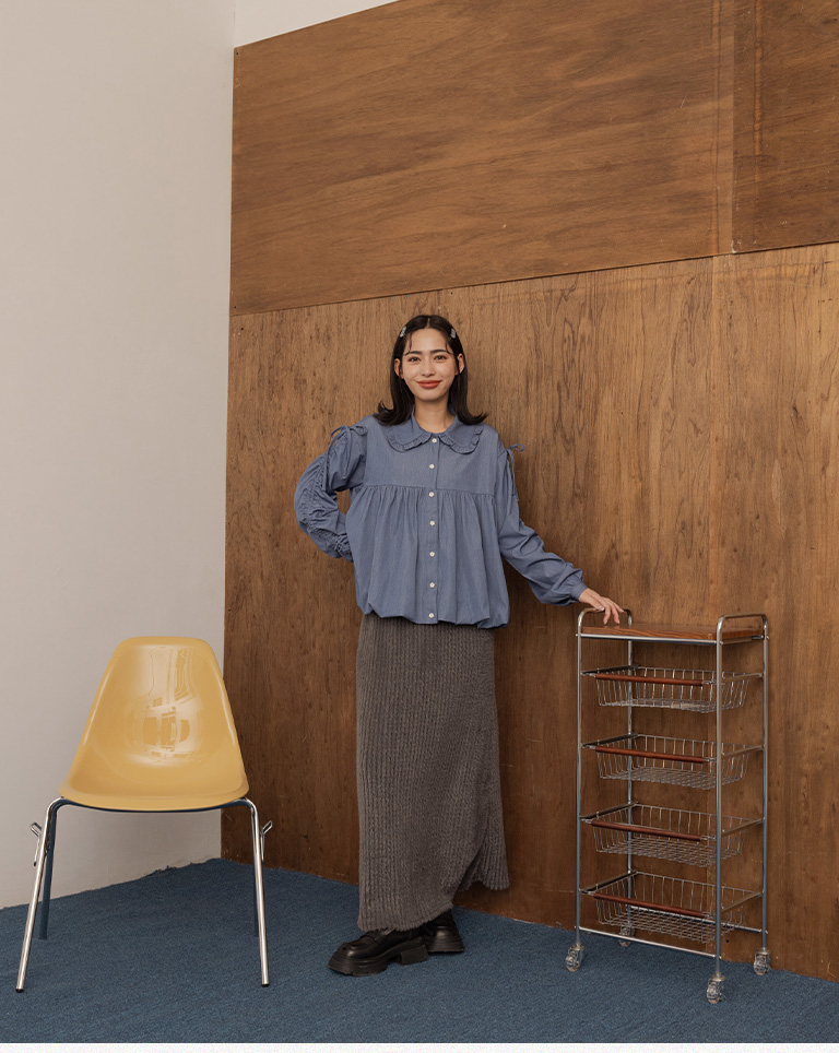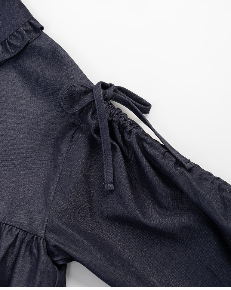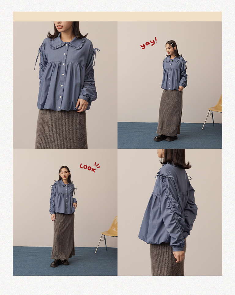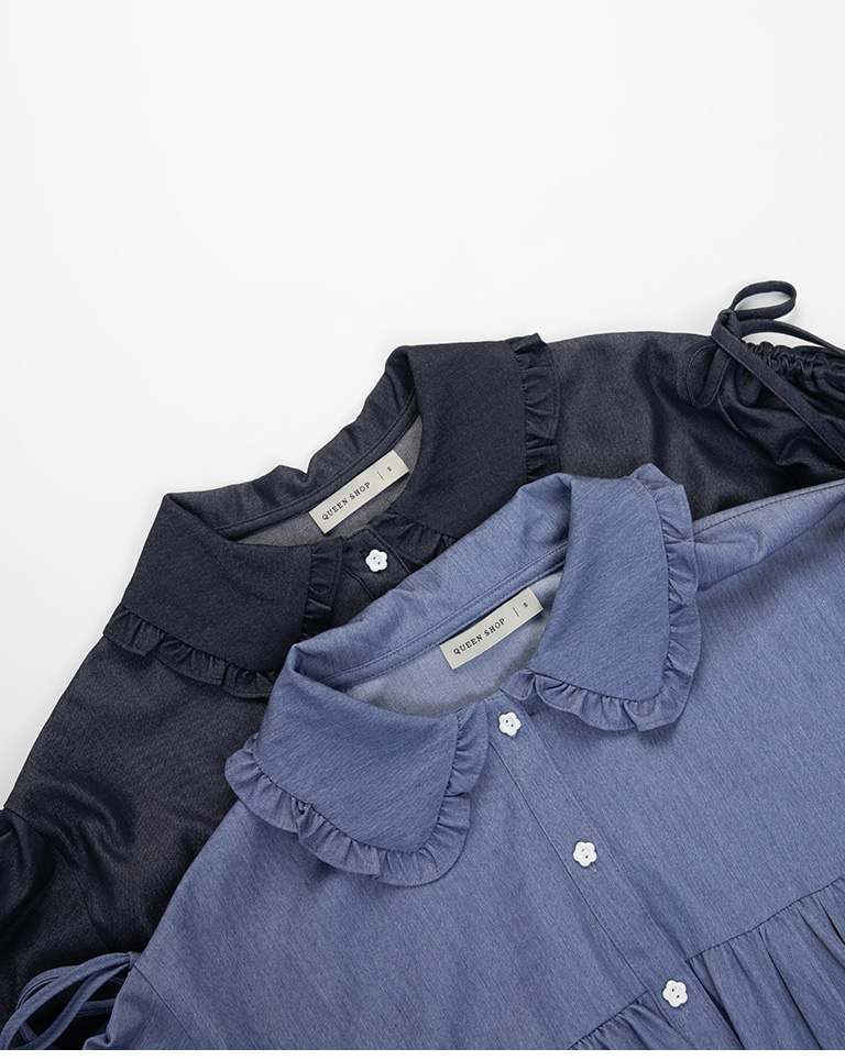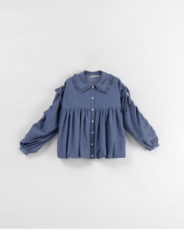 姵萱聯名 袖抽皺娃娃領牛仔上衣