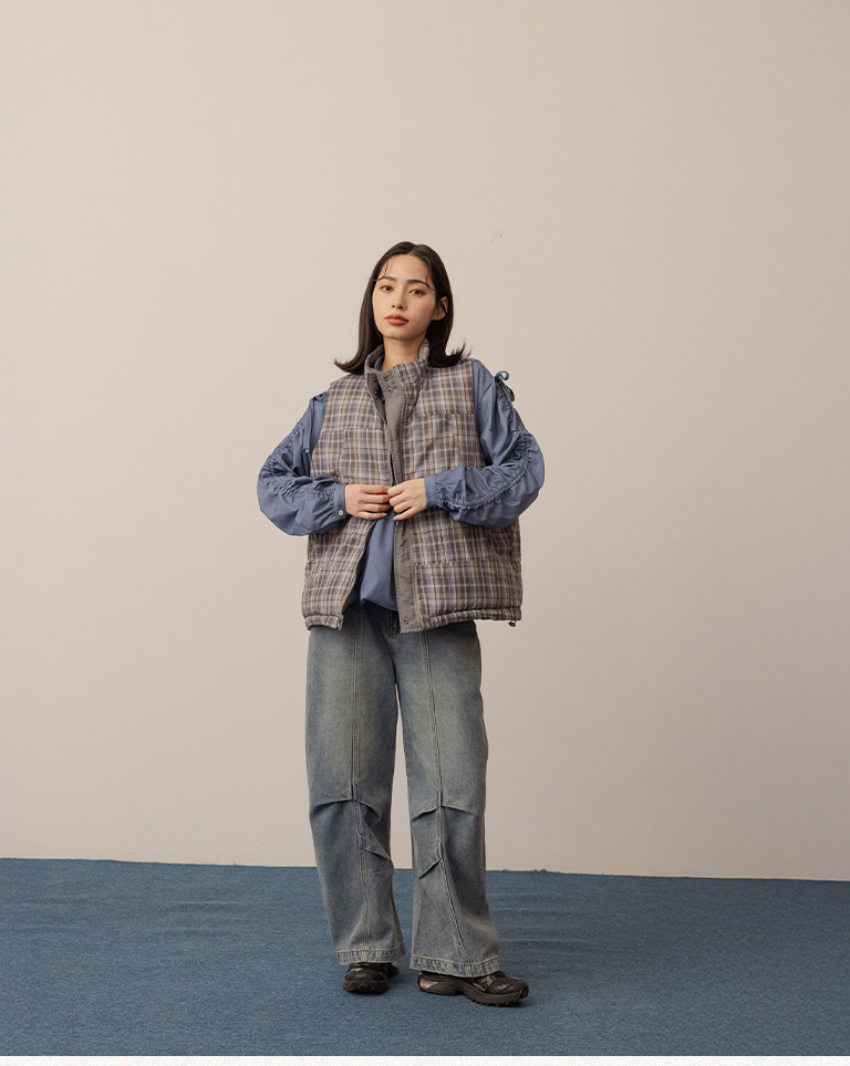 剪裁有型!個性線條錐形牛仔褲