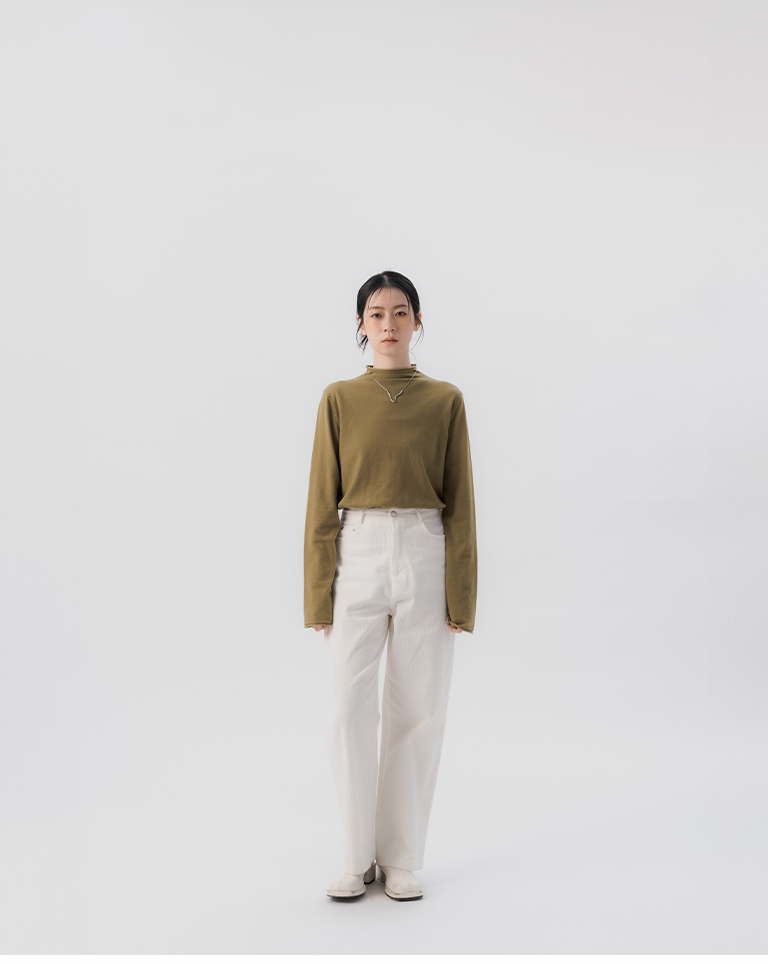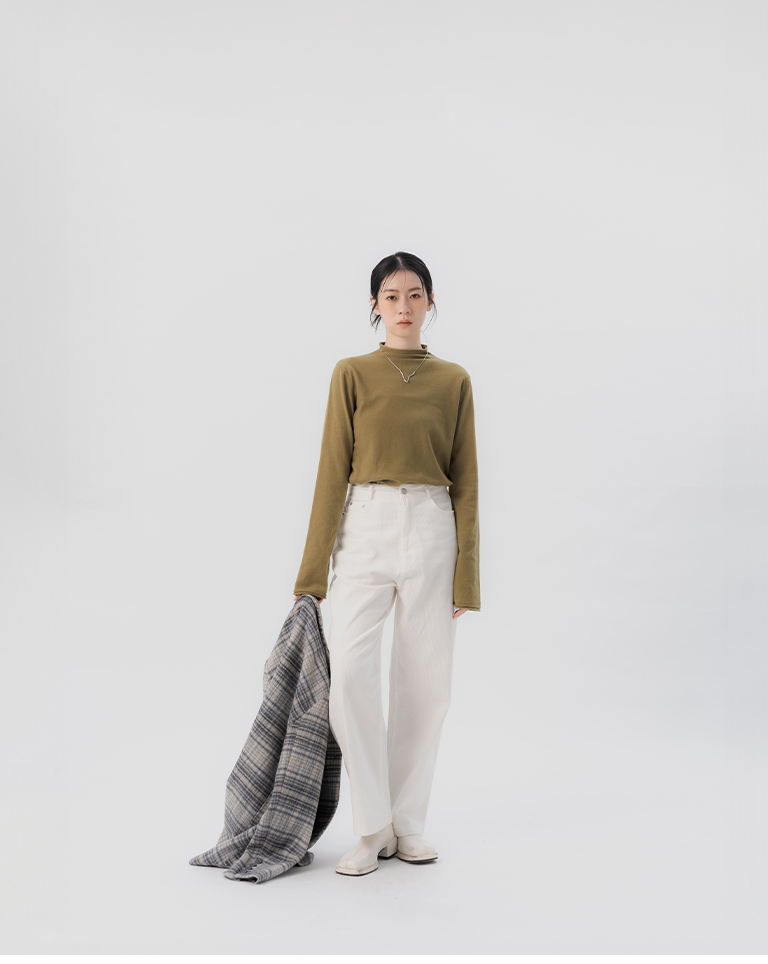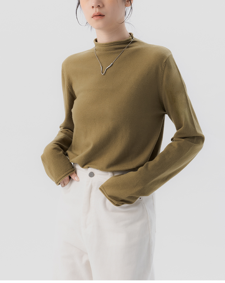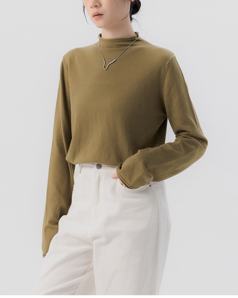 素面捲邊高領針織上衣