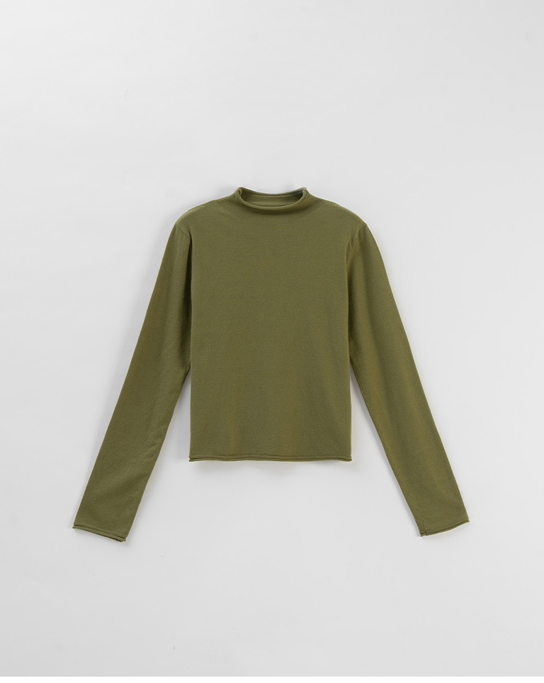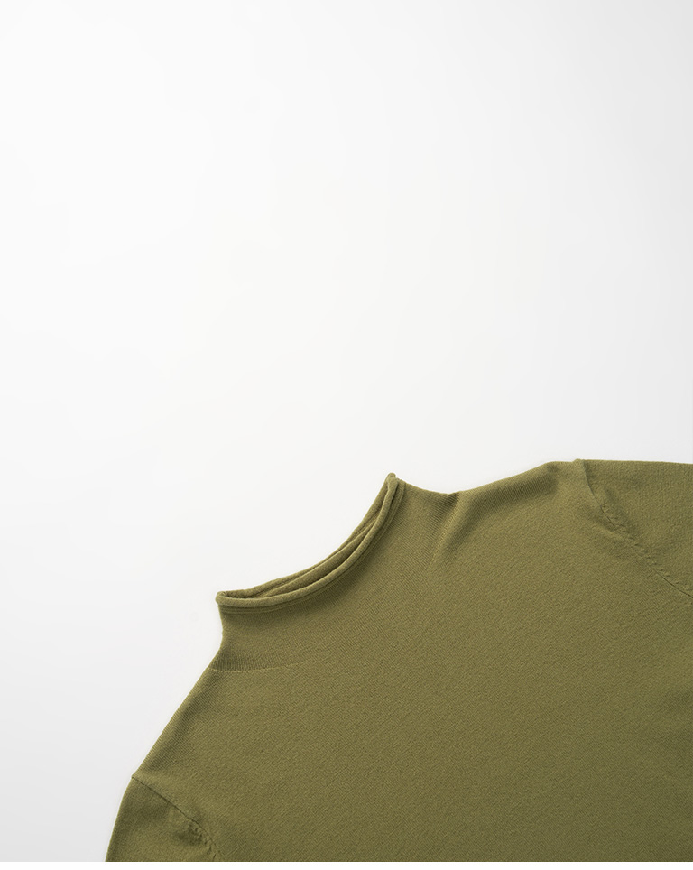 素面捲邊高領針織上衣-綠
