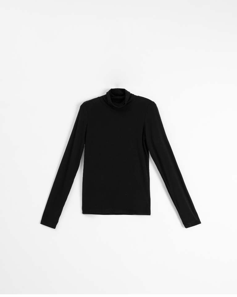 質感素面堆疊高領上衣-黑